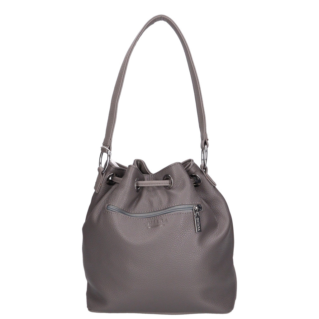 Chiara rostbőr válltáskazsinórral összehúzható mágneses záródású fő rekeszbelseje egyterűbelül cipáras zseb és mobiltartó hátul cipzáras zseblevehető vállpántja állíthatóSzé:25x Ma:25x Mé:14 cm