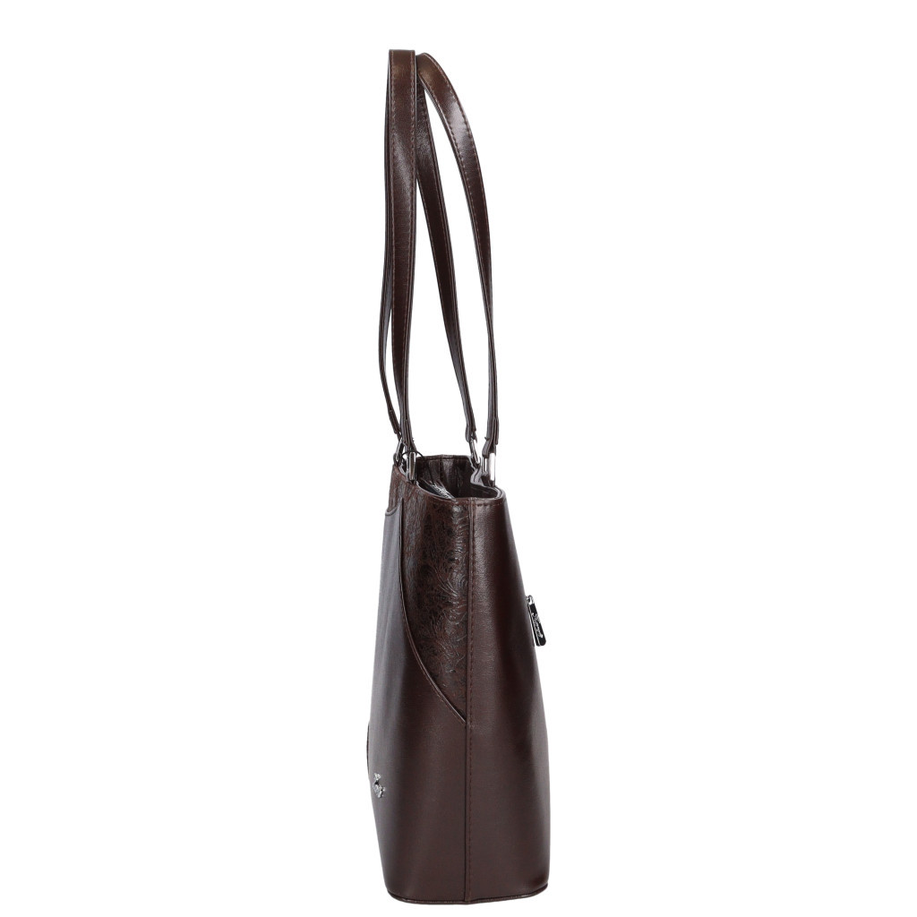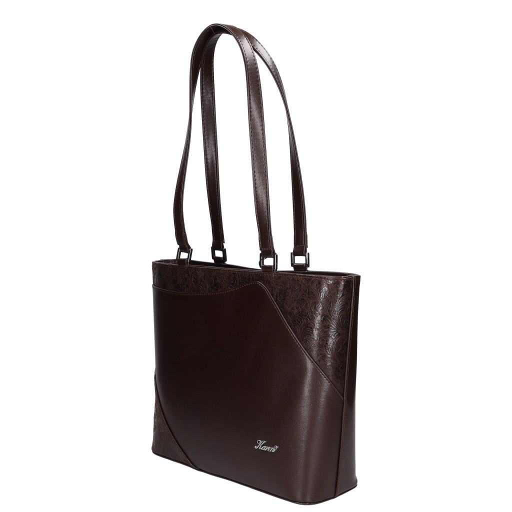 Karen rostbőr női táskahátulján cipzáros zsebbelseje osztottközépen cipzáros rekeszmobiltok és belső zsebbelső cipzáros zsebvállon hordhatóvállpántja 60 cmSzé:32x Ma:28x Mé:11 cm