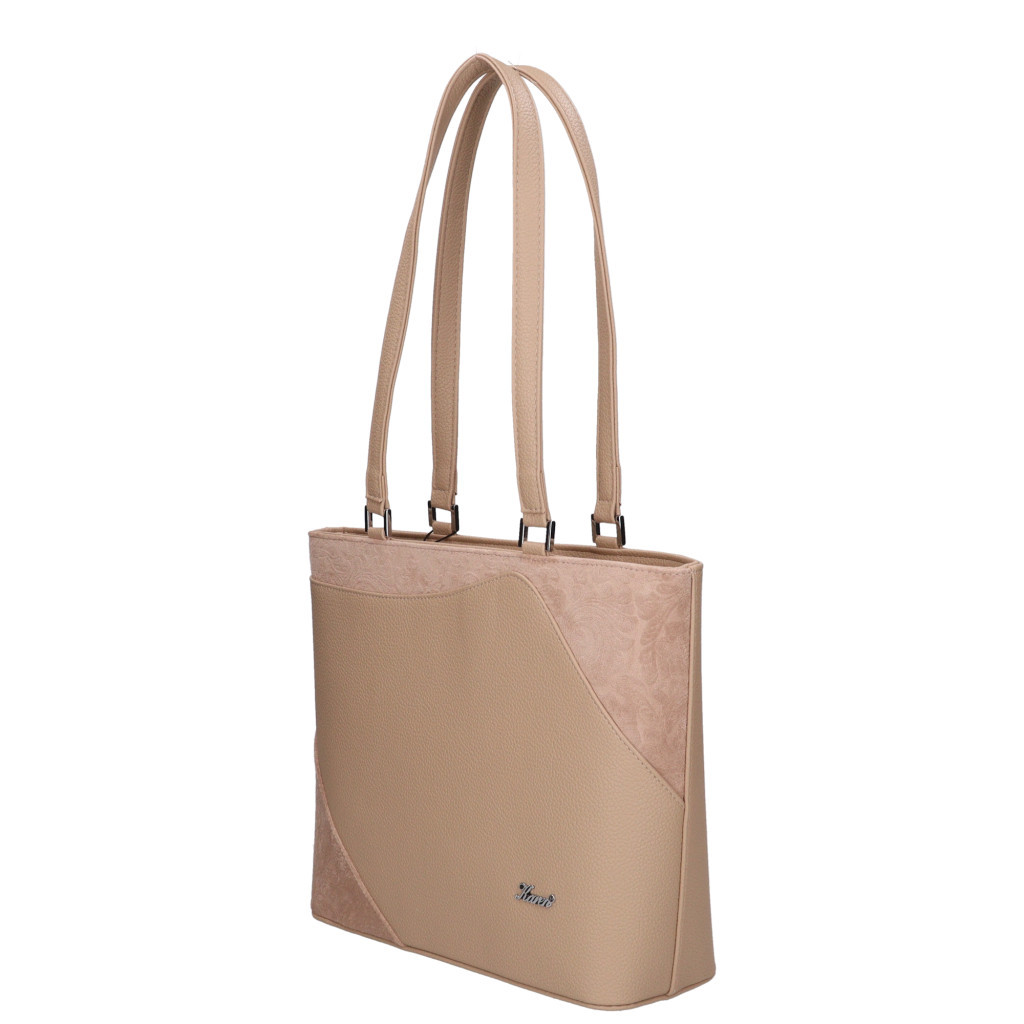 Karen rostbőr női táskahátulján cipzáros zsebbelseje osztottközépen cipzáros rekeszmobiltok és belső zsebbelső cipzáros zsebvállon hordhatóvállpántja 60 cmSzé:32x Ma:28x Mé:11 cm