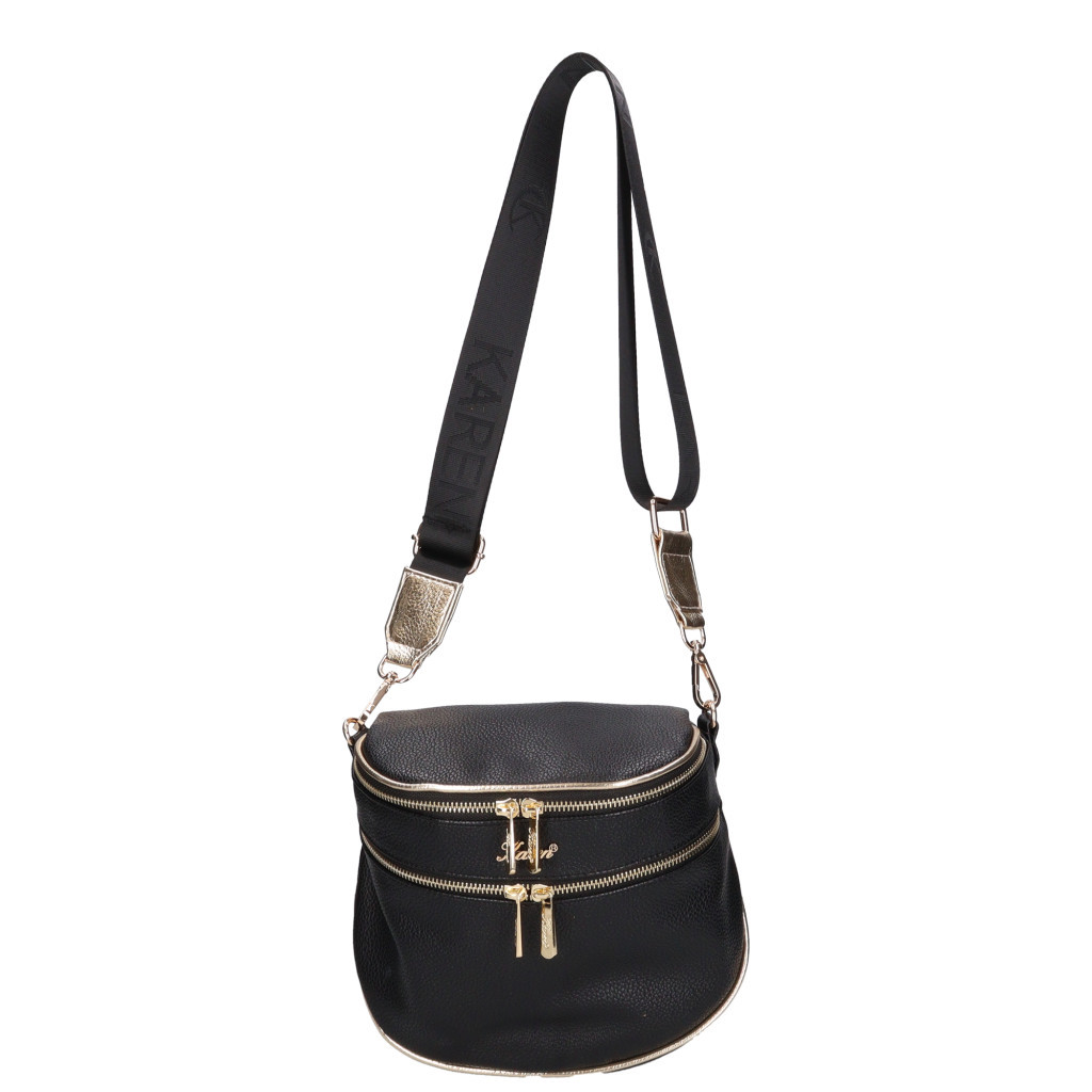 Karen rostbőr női táskaFiatalos fazonkeresztben hordhatóelöl két cipzáras zsebbelső zseb vállpántja állítható 60-100 cmSzé:26x Ma:19x Mé:10 cm