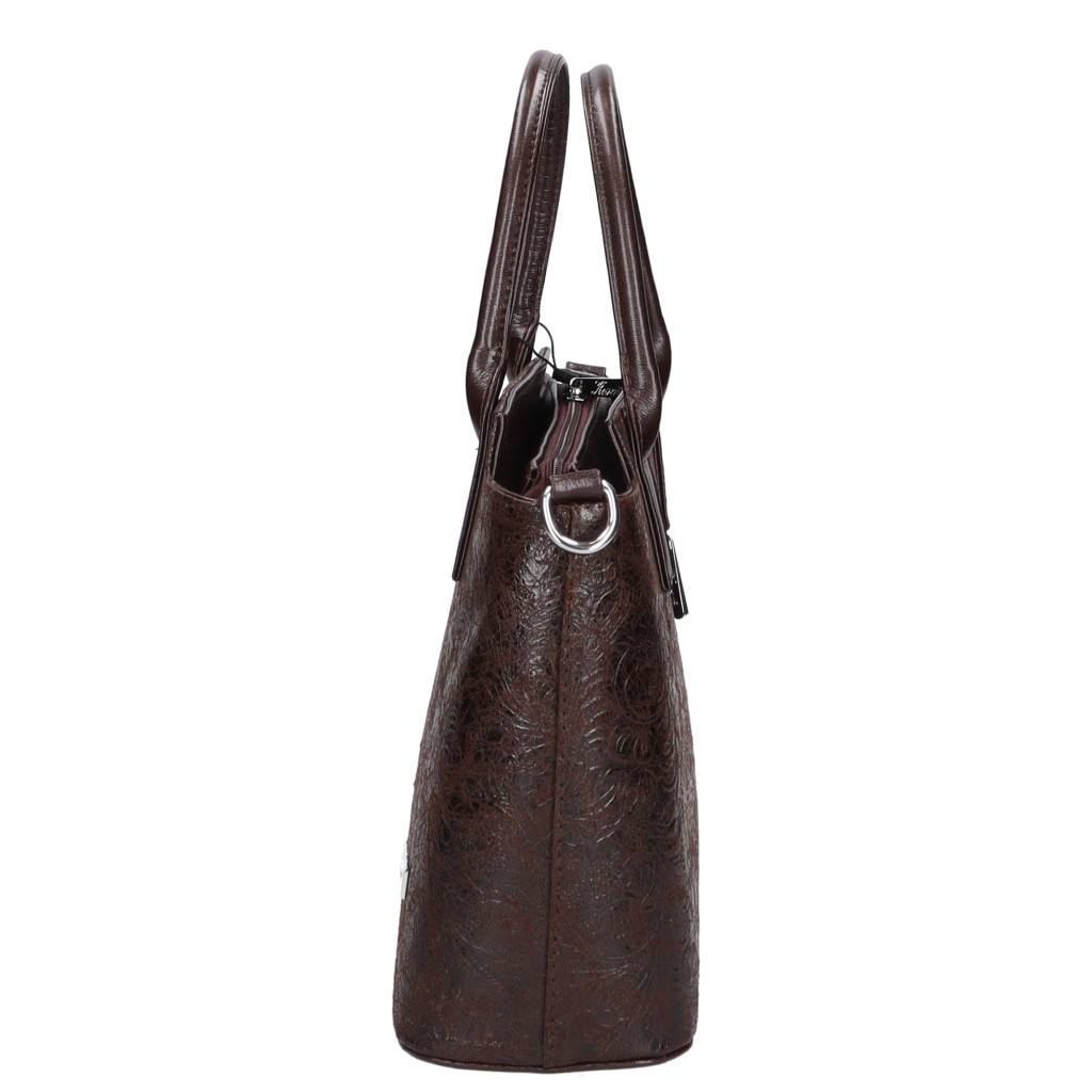 KAREN rostbőr női táskacipzáras fő rekeszbelül osztottbelül cipzáras zseb és mobiltartóhátulján cipzáras zsebkézben és vállon hordhatókézbe fogója 35 cm vállpántja lecsatolható állítható 65-125 cmalján fém védőtalpakSzé:32x Ma:24x Mé:11,5cm