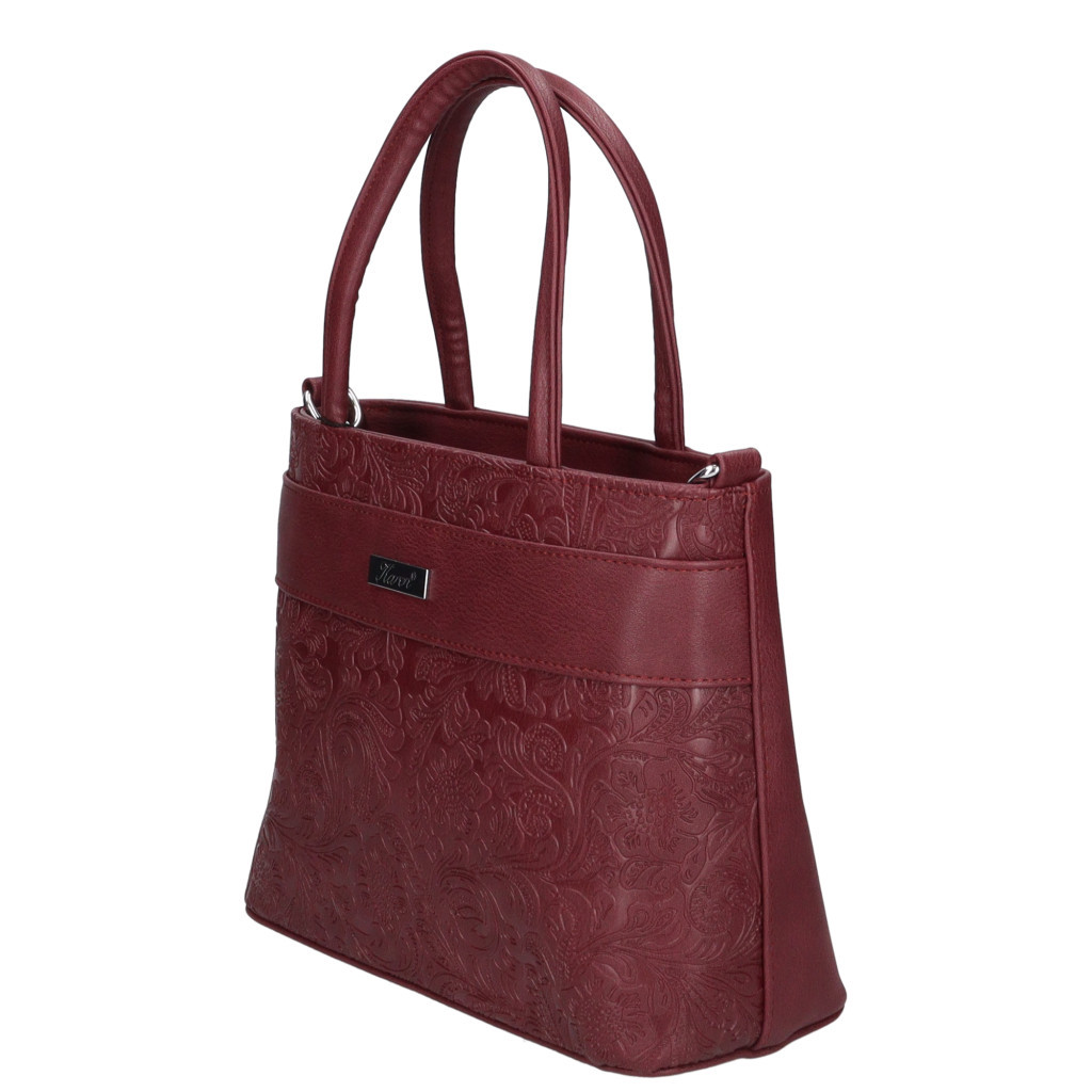 Karen rostbőr női kézitáskacipzáras fő rekeszcipzáras belső elválasztókét rekeszesbelül mobiltartó és cipzáras zsebhátul cipzáras zsebalján fémvédő talpakSzé:28 x Ma:23 x Mé:11 cm