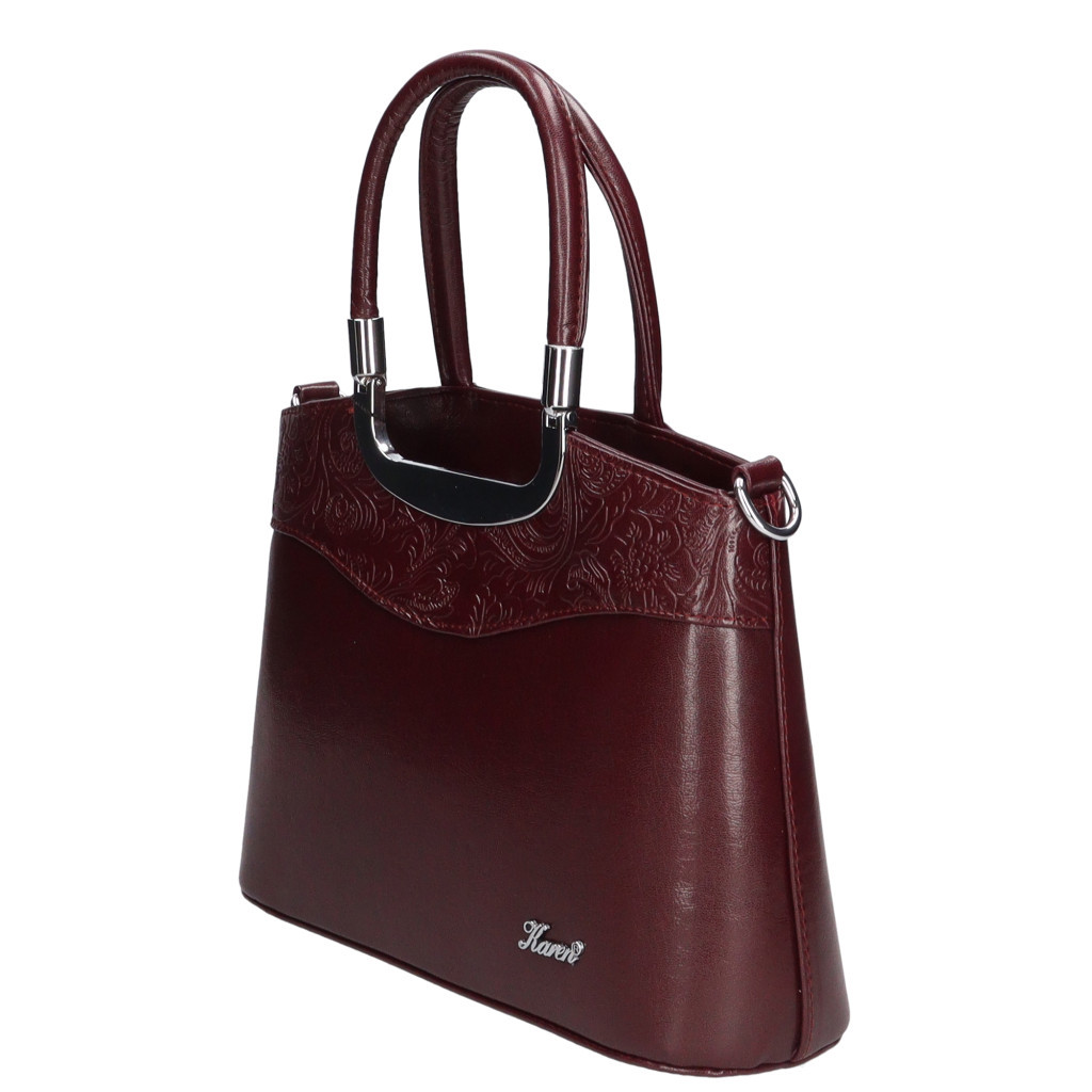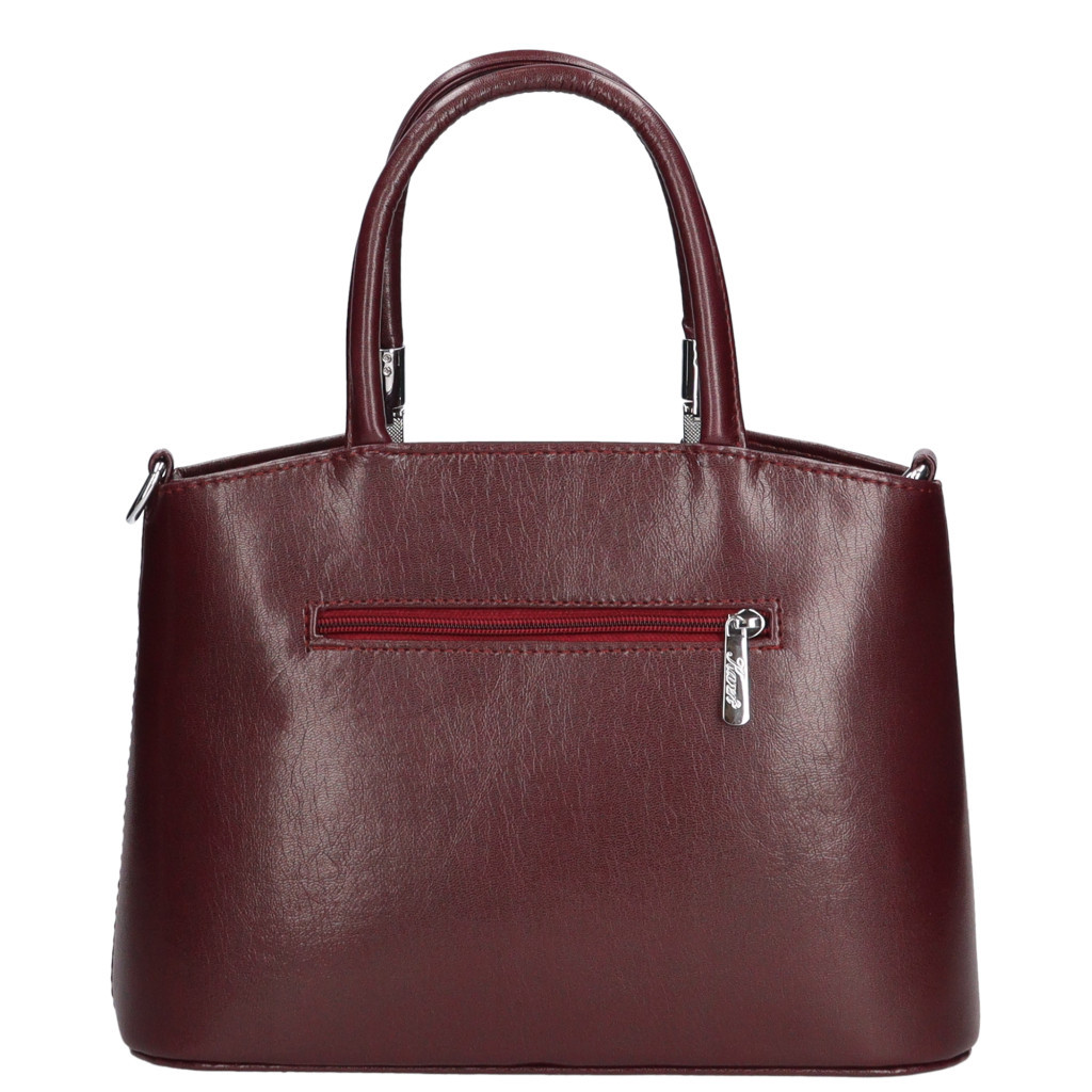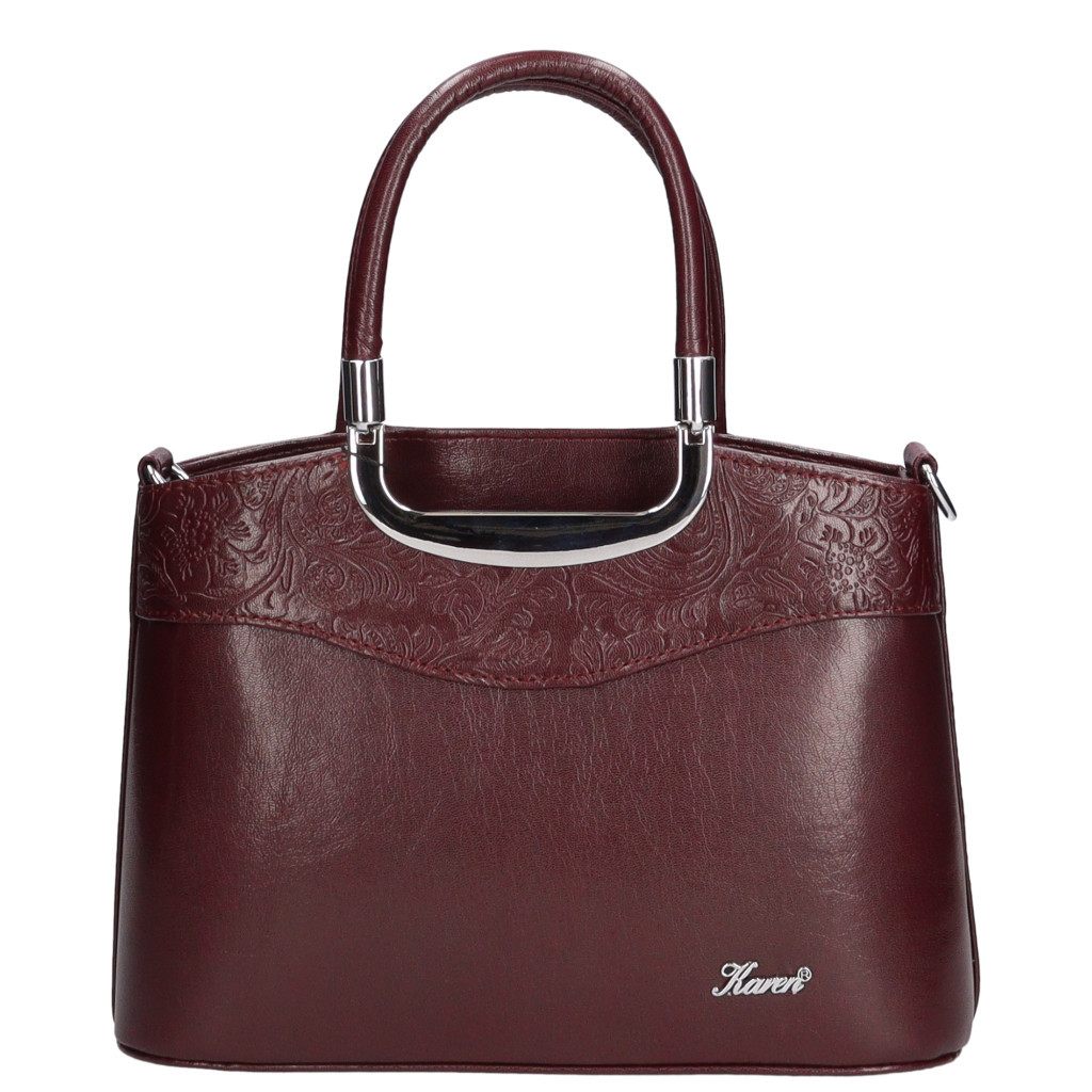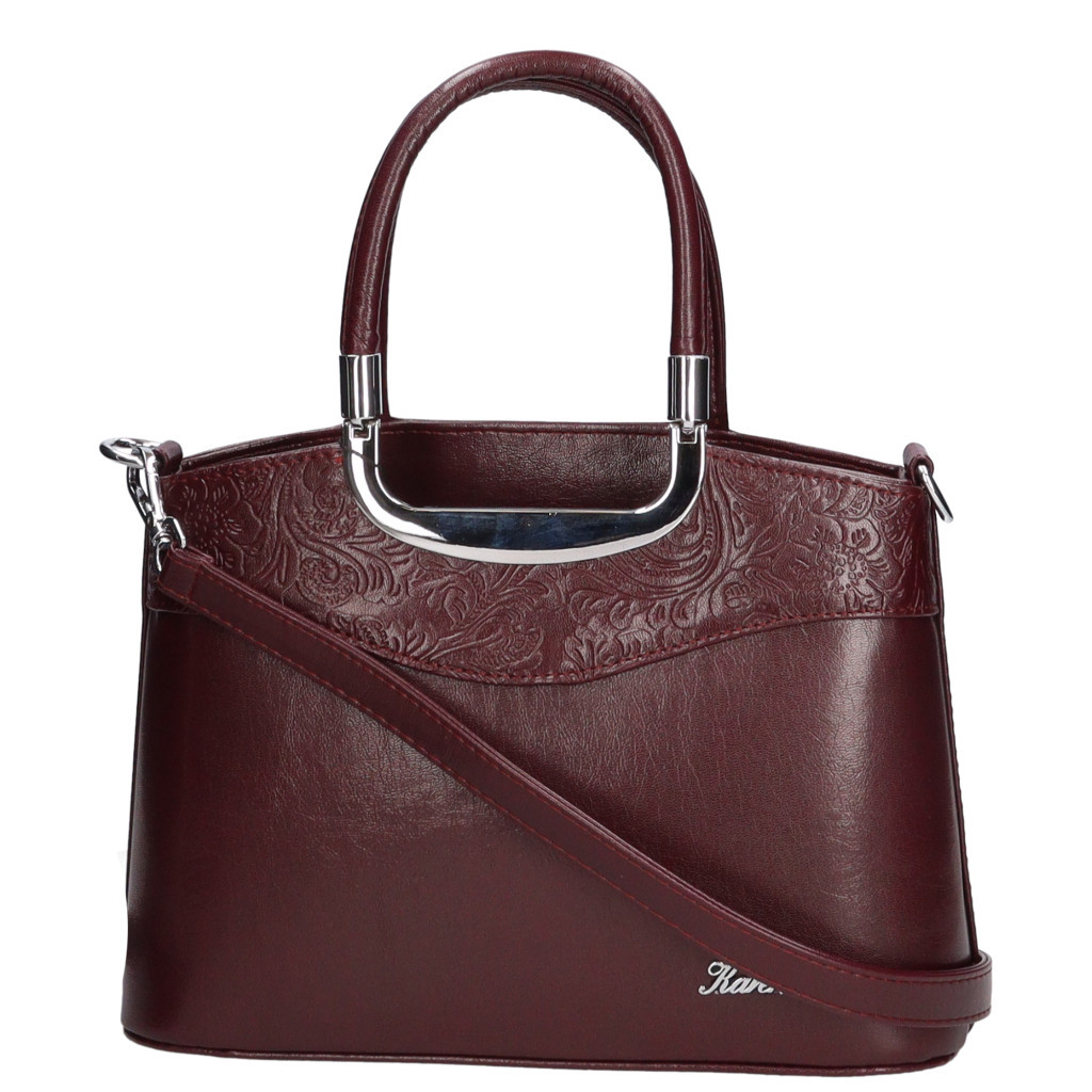 Karen rostbőr női kézi táskaelegáns kicsi fazonkézi fogóján szép fém kellékelején elegáns íves betéthátulján cipzáras zsebkomfortos belsőbelül kétrekeszesközépen cipzáras elválasztótáska alján fém védőtalpakA4-es méretnél kisebbkézbe fogója 35 cmvállpántja 60-100 cmSzé:31x Ma:22x Mé:10cm