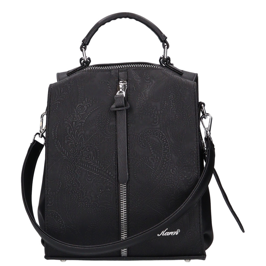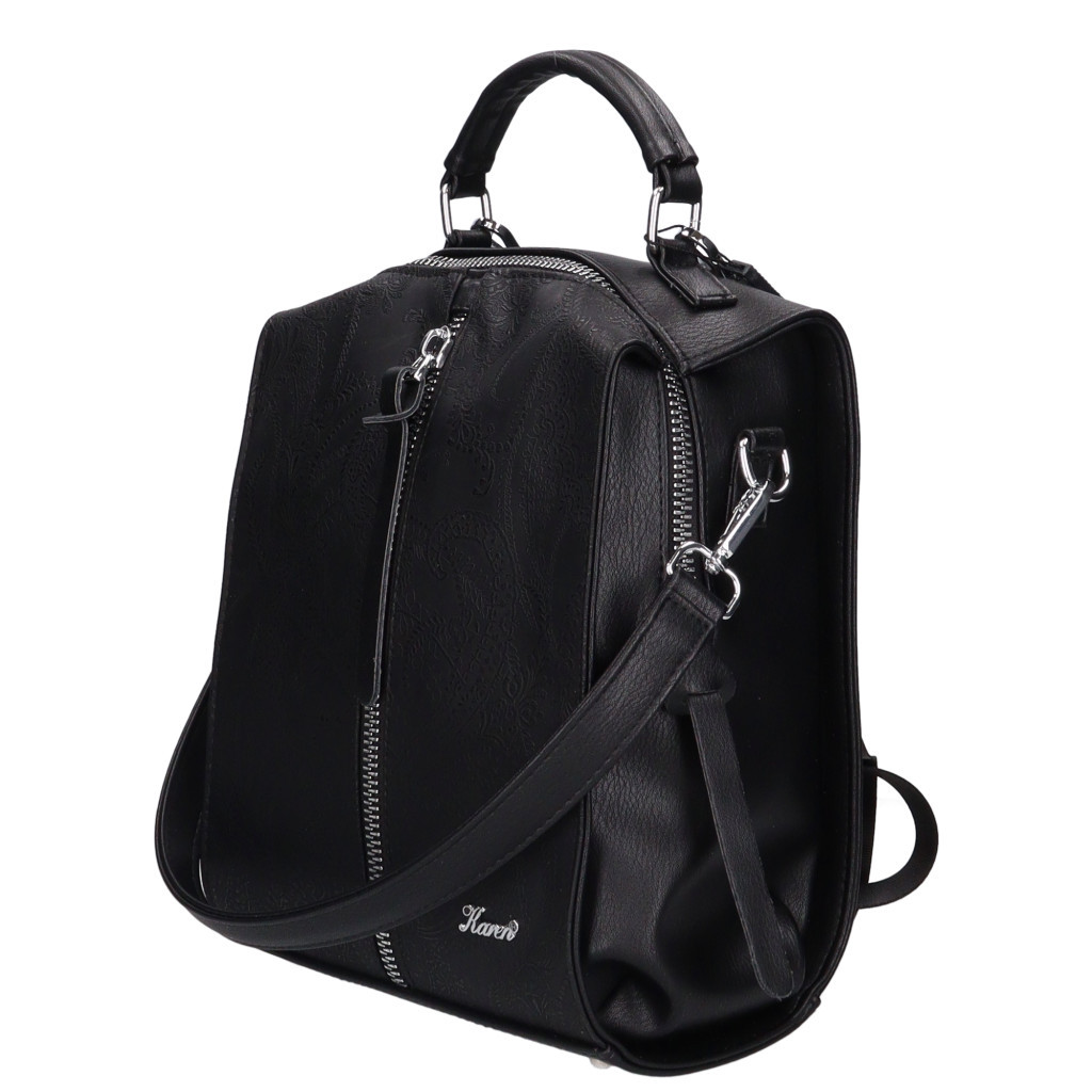 Karen rostbőr hátitáskaközepes méretűszögletes fiatalos fazonelején díszcipzárhátulján cipzáros zsebtetején cipzáros fő rekeszbelül egyterűmobiltartó és belső cipzáros zsebvállon és háton hordhatóSzé:26x Ma:32x Mé:15cm