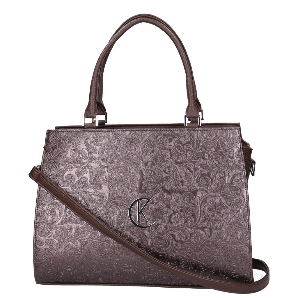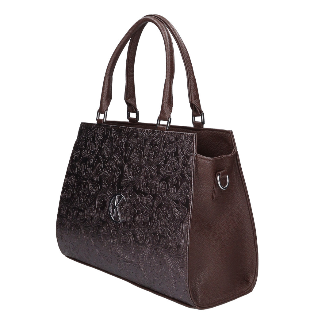 Karen rostbőr női kézitáskaelegáns merev fazonelején fém Karen logóhátulján cipzáras zsebkomfortos belsőbelseje két rekeszesközépen cipzáras elválasztóbelső cipzáros zseb és mobiltartókézben és vállon hordhatókézbe fogója 40 cmállítható vállpántja 60-110 cmSzé:33 Ma:26 Mé:12 cm