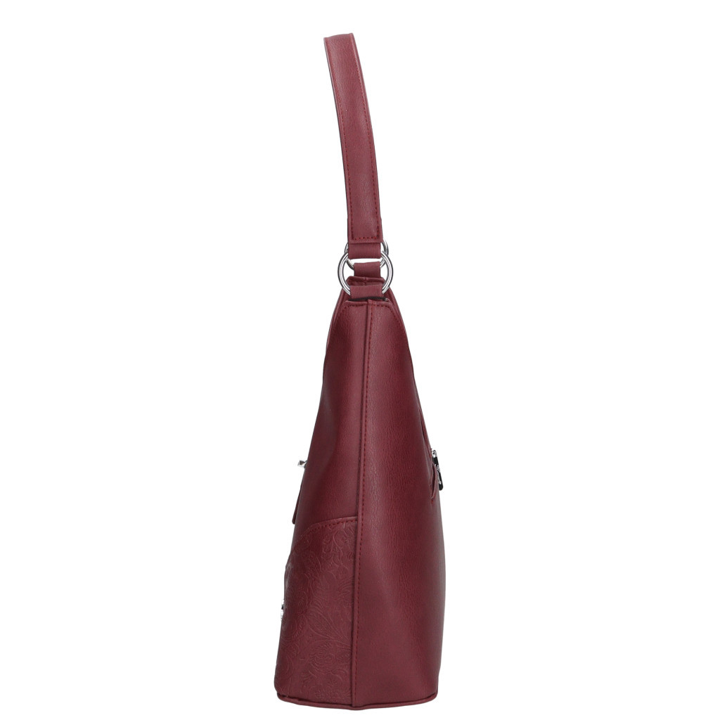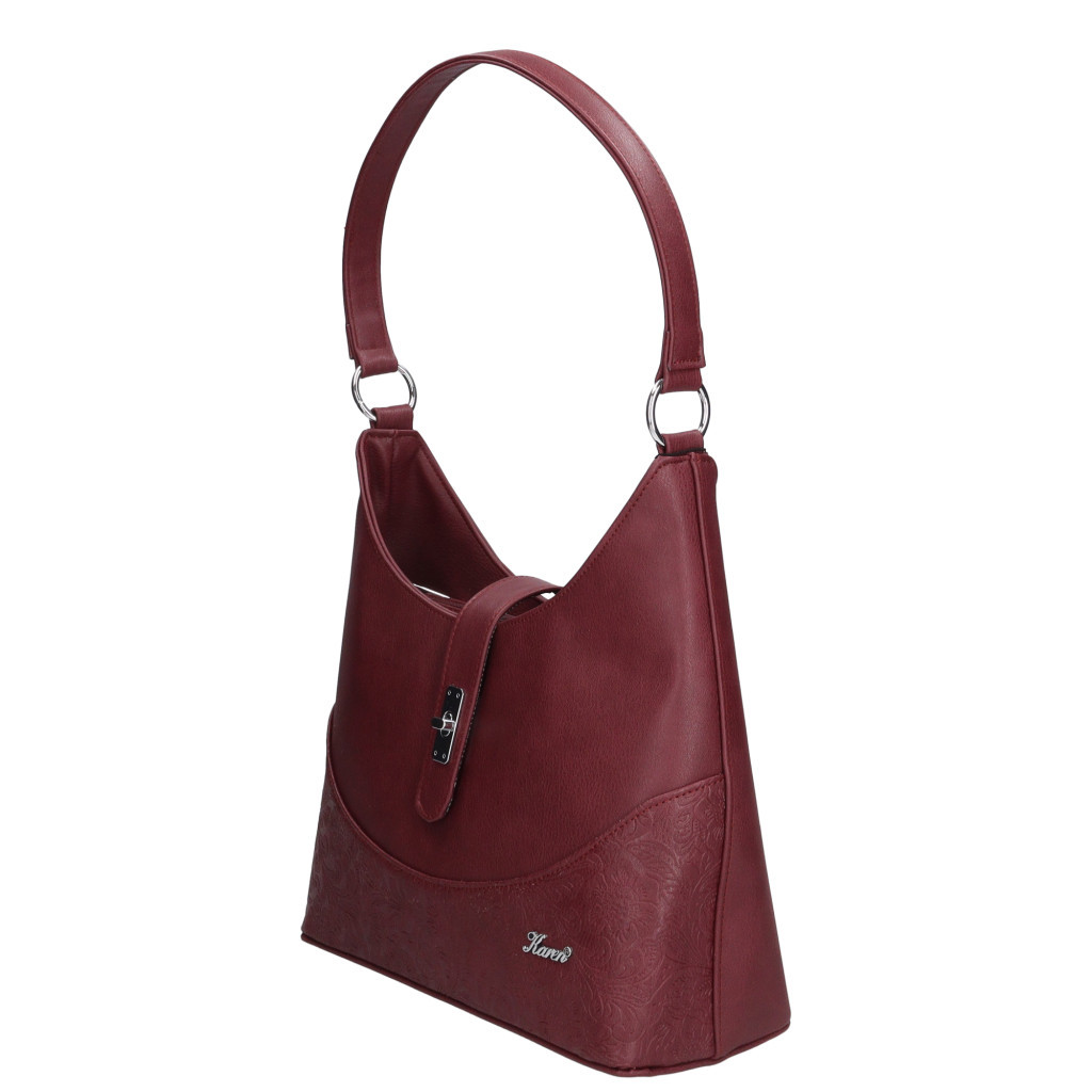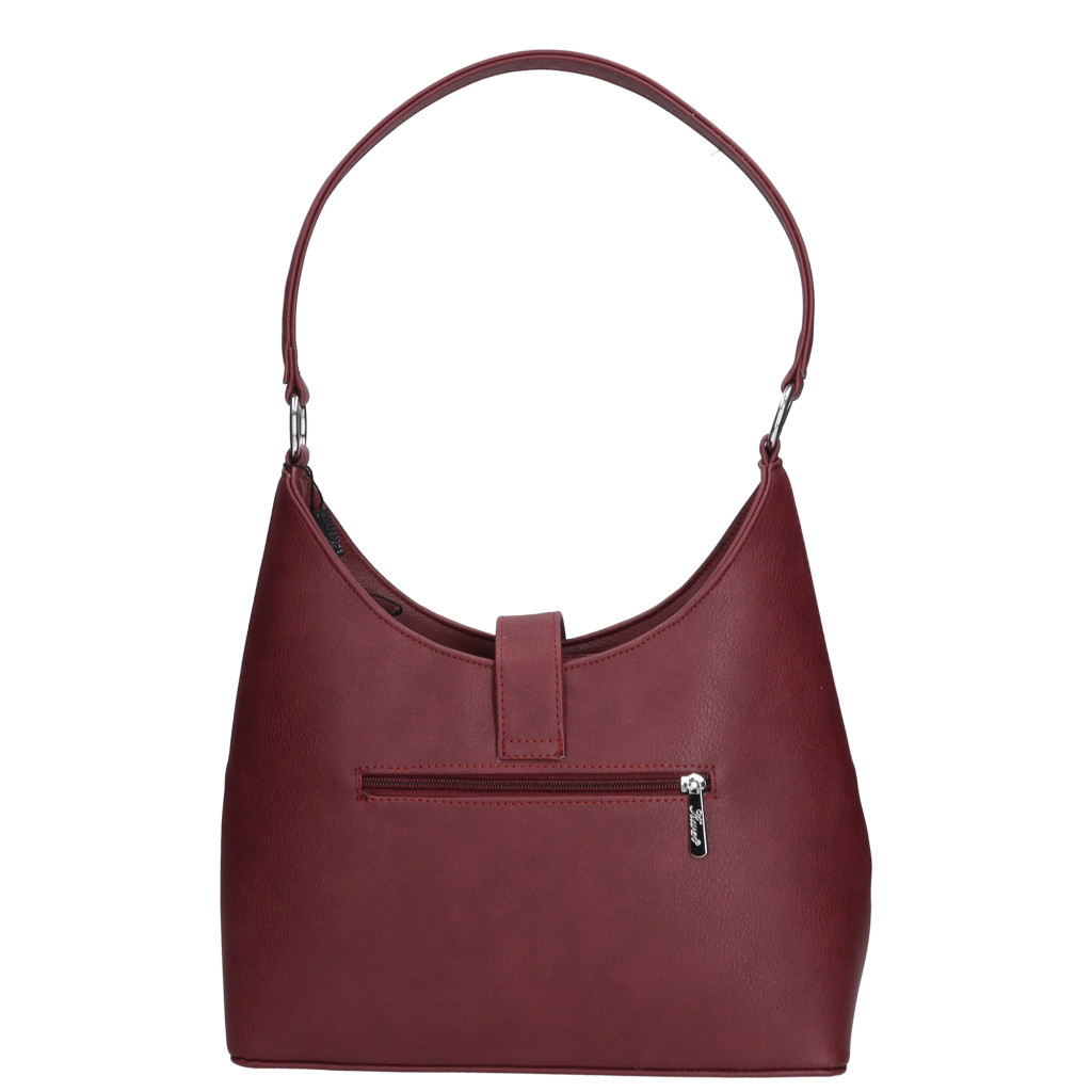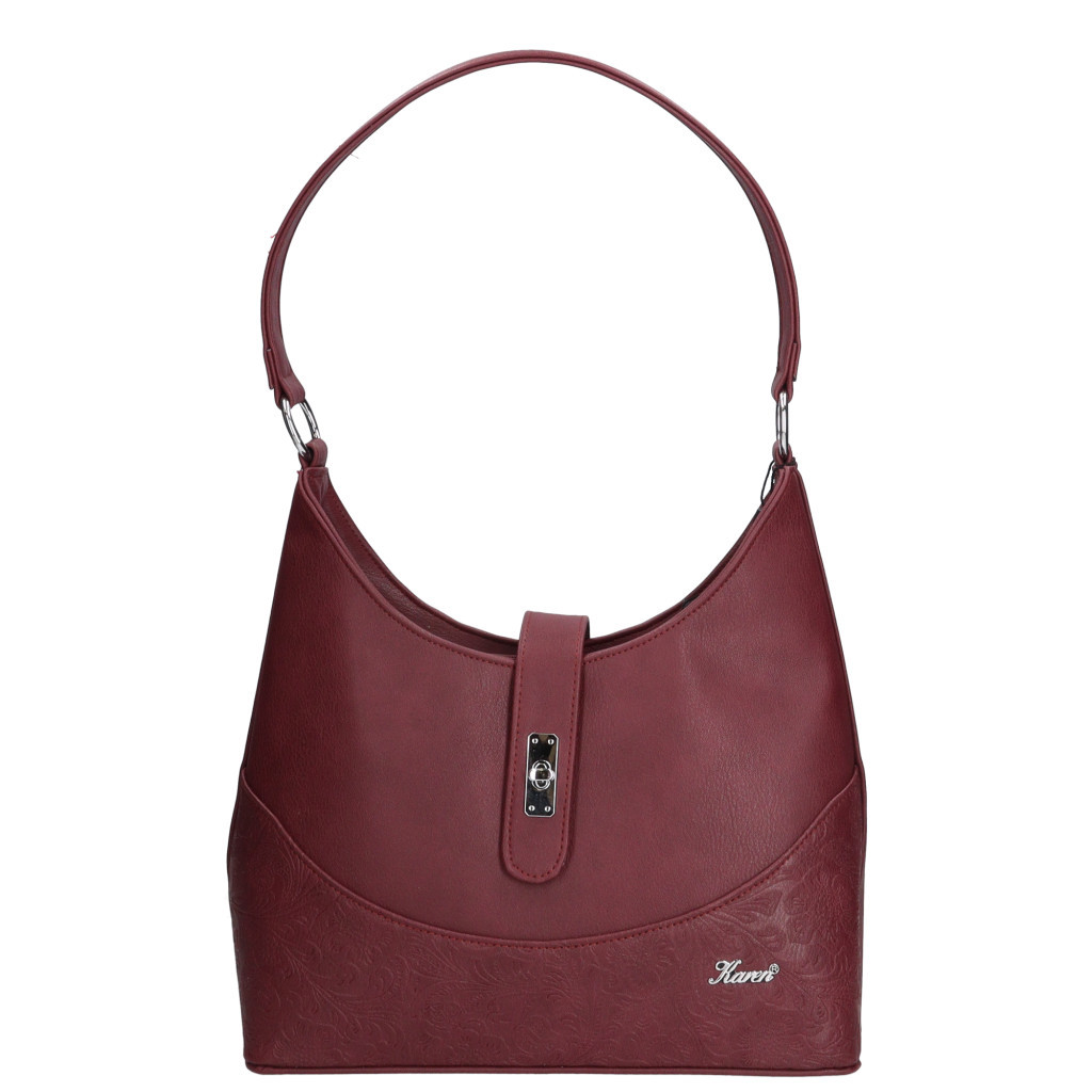 Karen rostbőr női válltáskaelegáns fazoncsatos áthajtócipzáras fő rekeszbelseje osztottcipzáras elválasztóvalbelül cipzáras zseb és mobiltartóhátulján cipzáras zsebalján fém védőtalpakvállpántja 56 cmSzé:32 x Ma:21 x Mé:11 cm