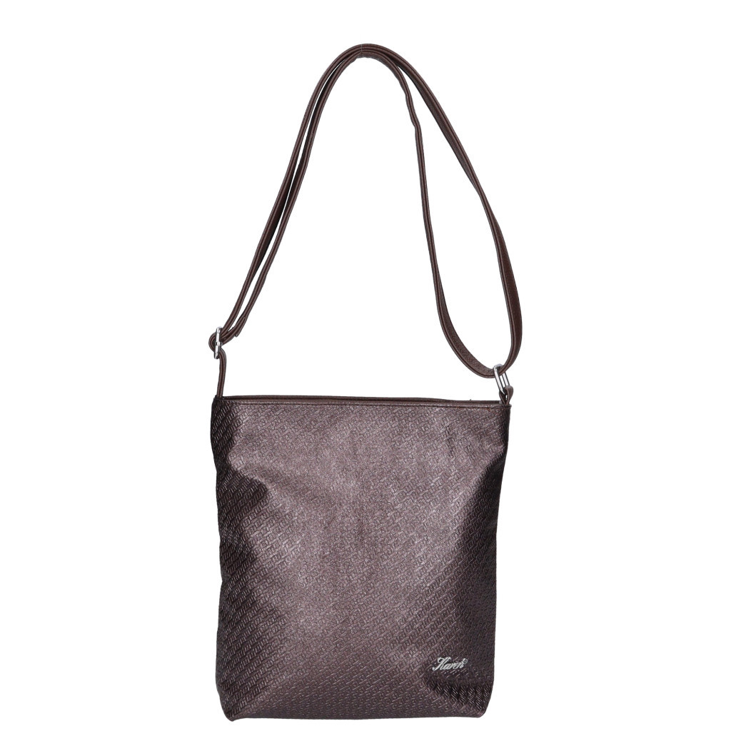 Karen rostbőr női oldaltáskahátulján cipzáras zsebcipzáras fő rekeszbelseje egyterűbelül mobiltartó és cipzáras zsebvállon és keresztben hordhatóvállpántja állítható 65-130 cmSzé:26x Ma:27x Mé: 9 cm