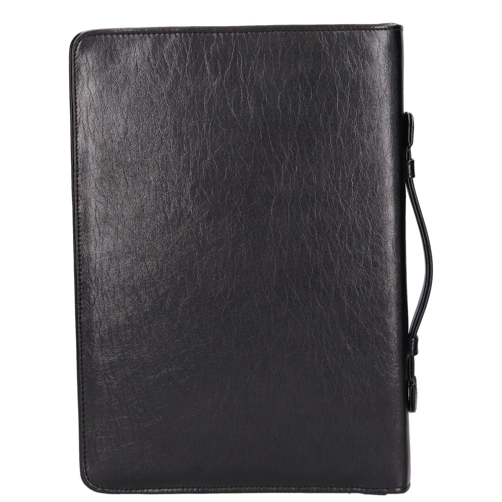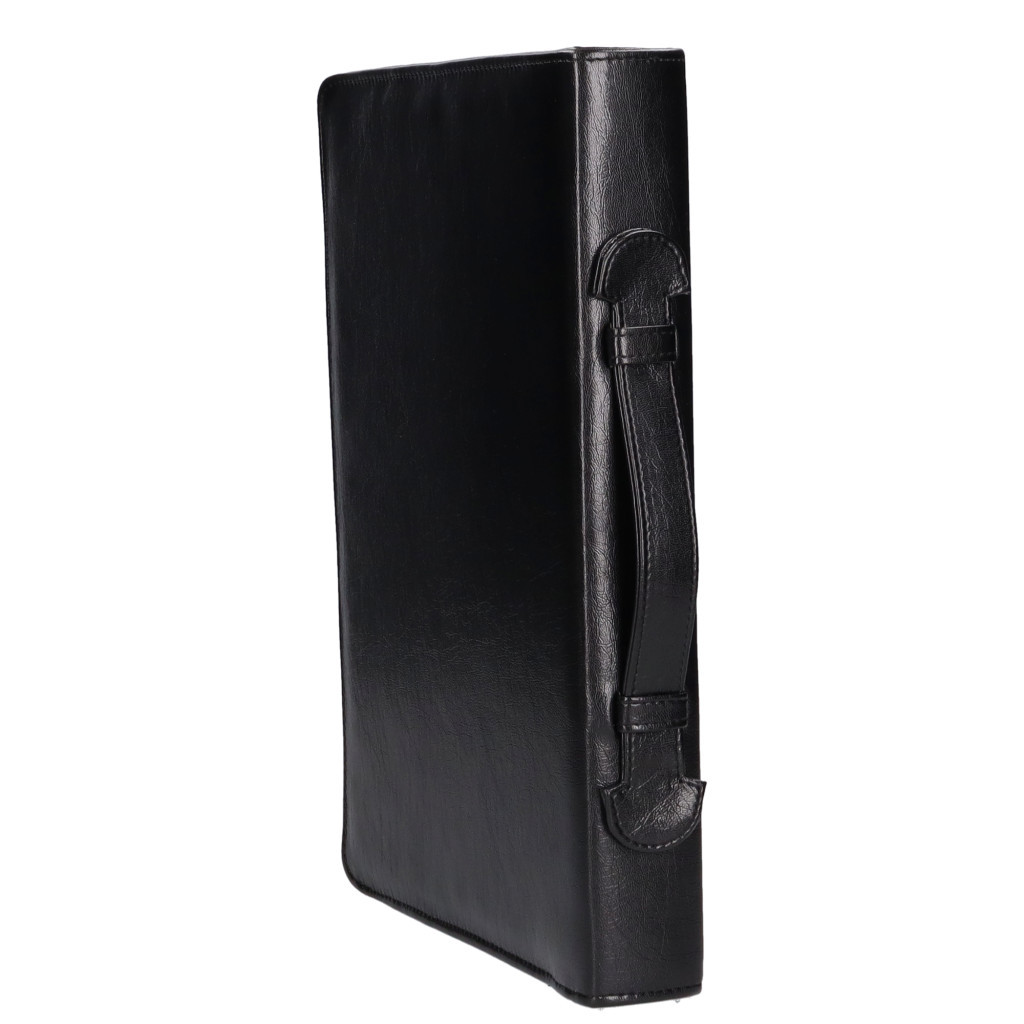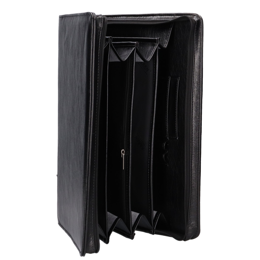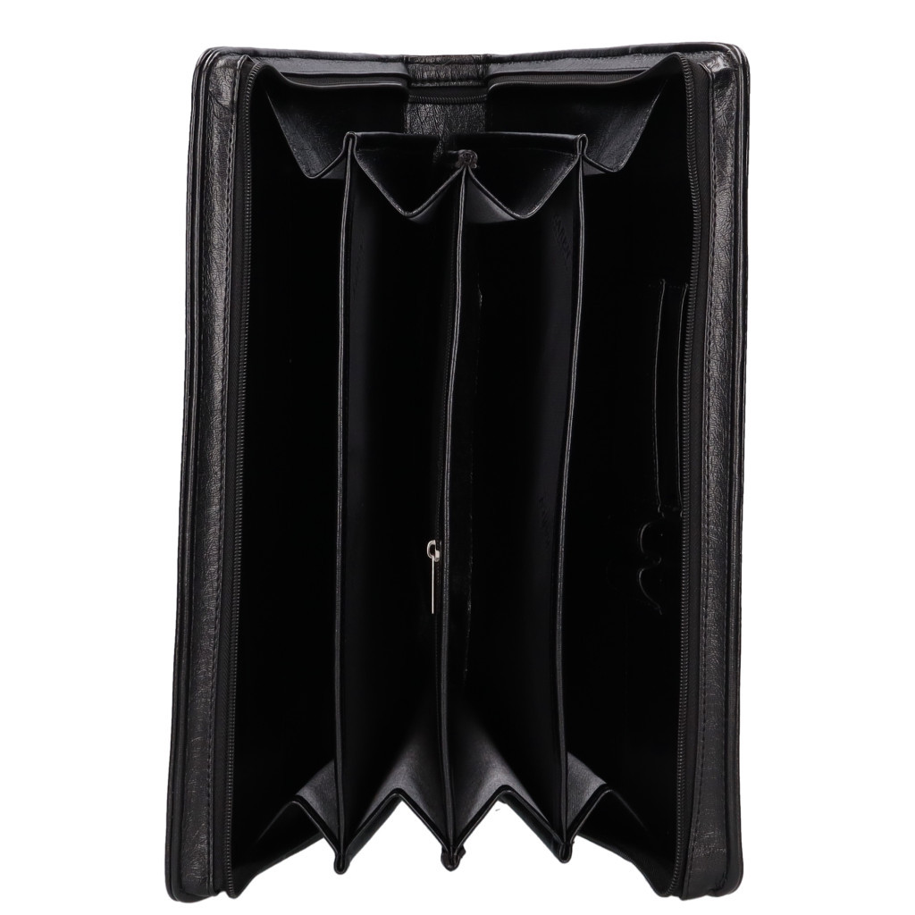 A4-es méretű rostbőr mappaoldalán praktikus fogantyúkörbe cipzárosbelseje négy rekeszesközépen nagy cipzáros zsebbelül telefontok és két tolltartó szé.: 39x ma.: 27x mé.: 6 cm