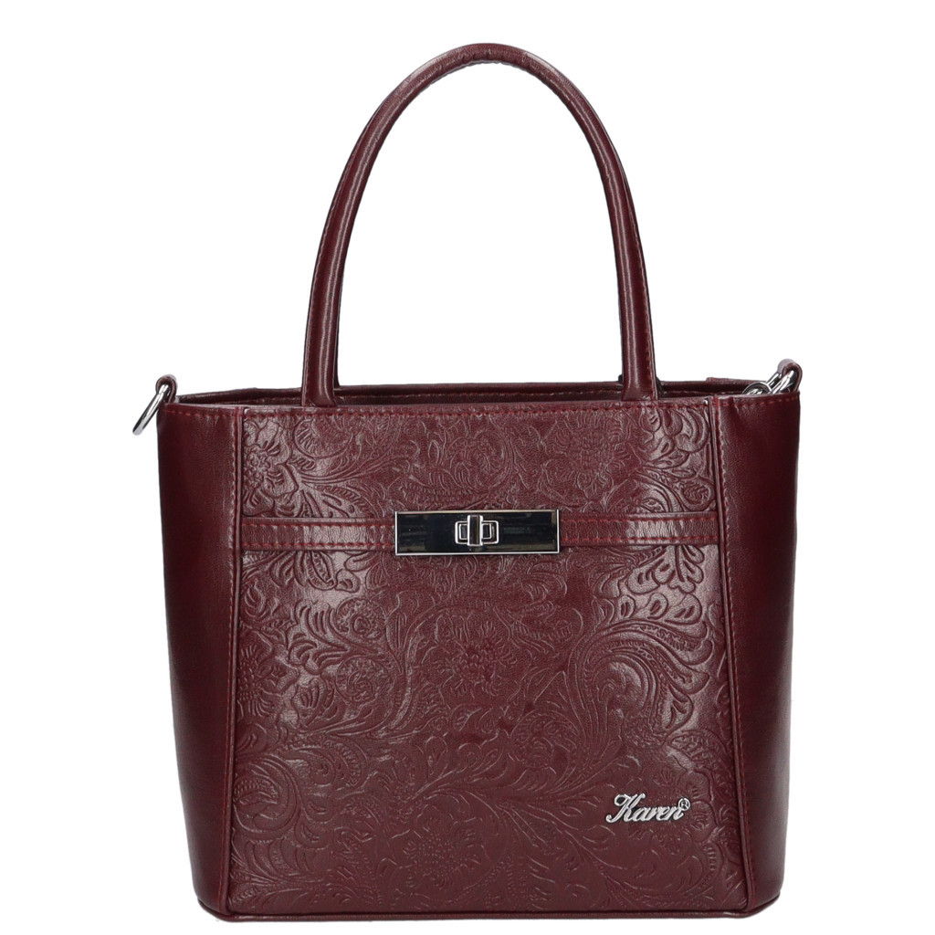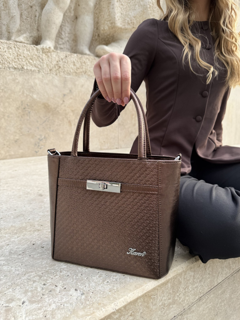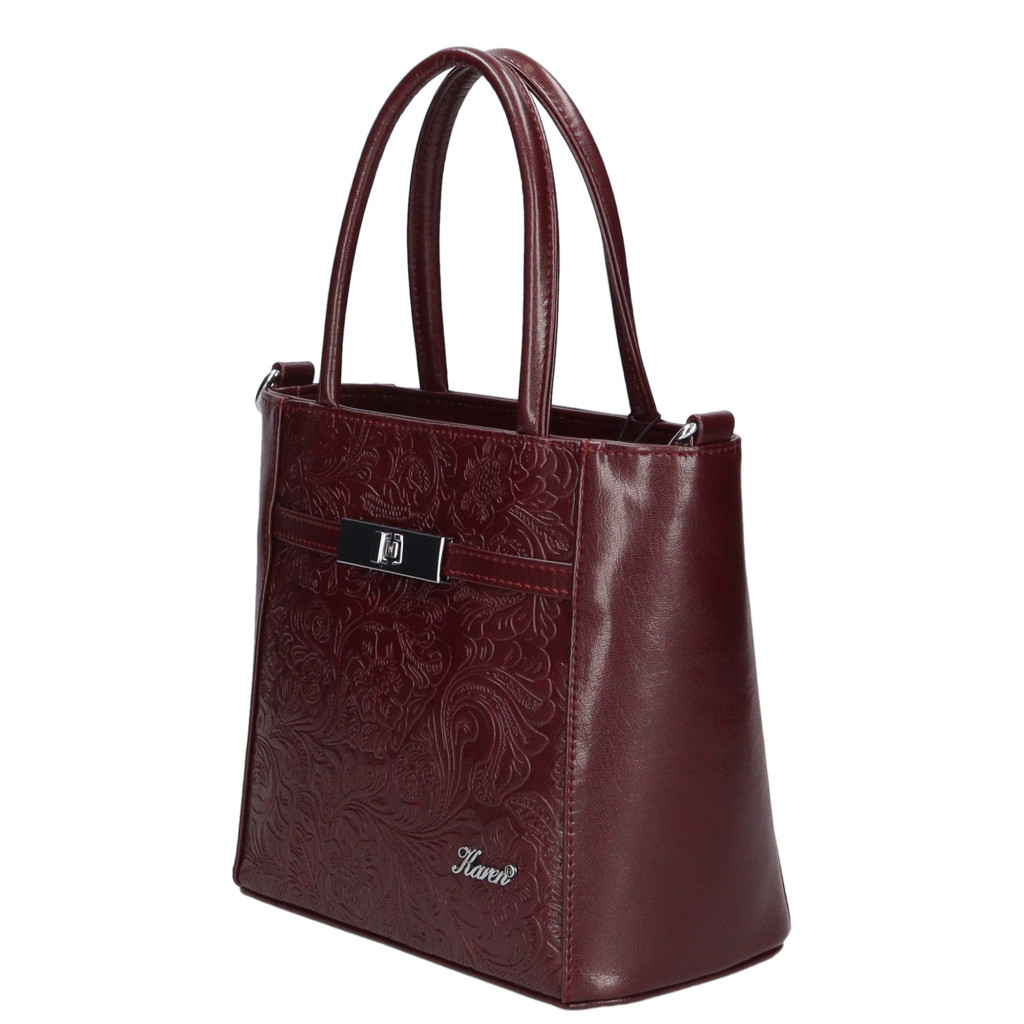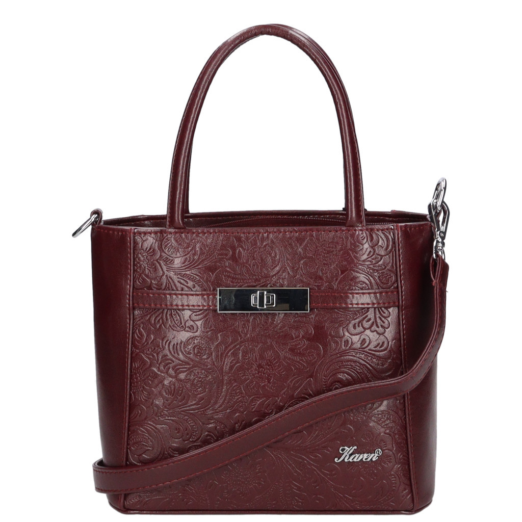 Karen rostbőr női kézitáskacipzáras fő rekeszcipzáras belső elválasztókét rekeszesbelül mobiltartó és cipzáras zsebhátul cipzáras zsebalján fémvédő talpakSzé:24 x Ma:21 x Mé:12 cm