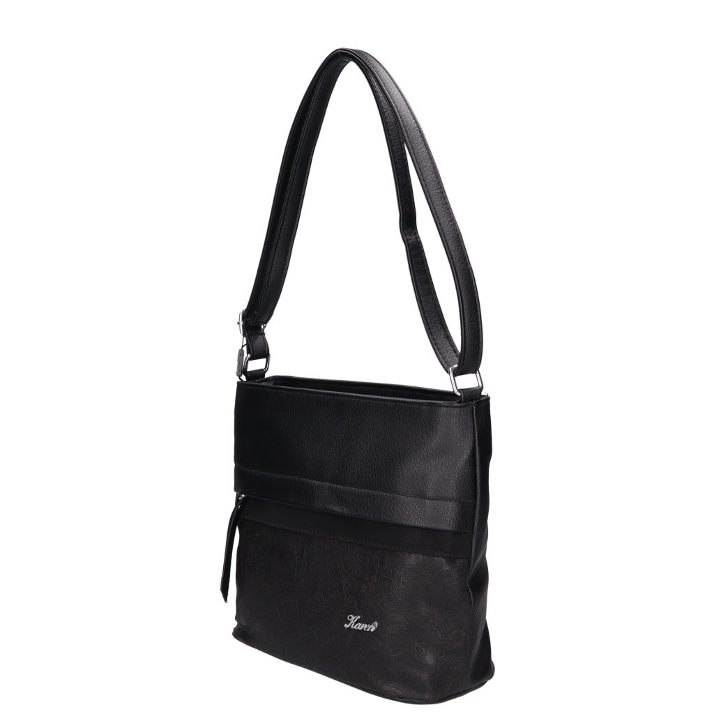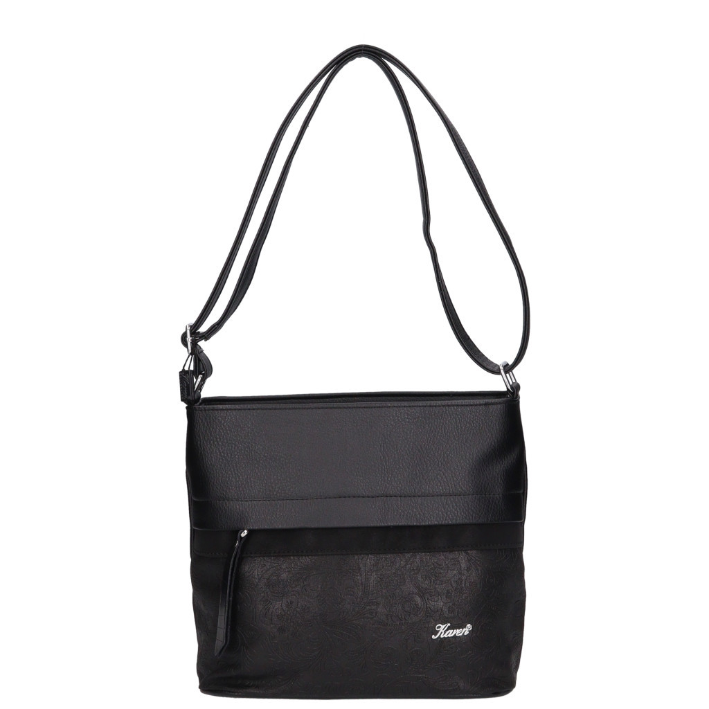 Karen rostbőr női válltáskaelején keresztben cipzáras zsebhátulján cipzáras zsebbelseje egyterűmobiltartó és belső zsebhosszú pántoskeresztben is hordhatóvállpántja állítható 70-130 cmSzé:32x Ma:25x Mé:13 cm