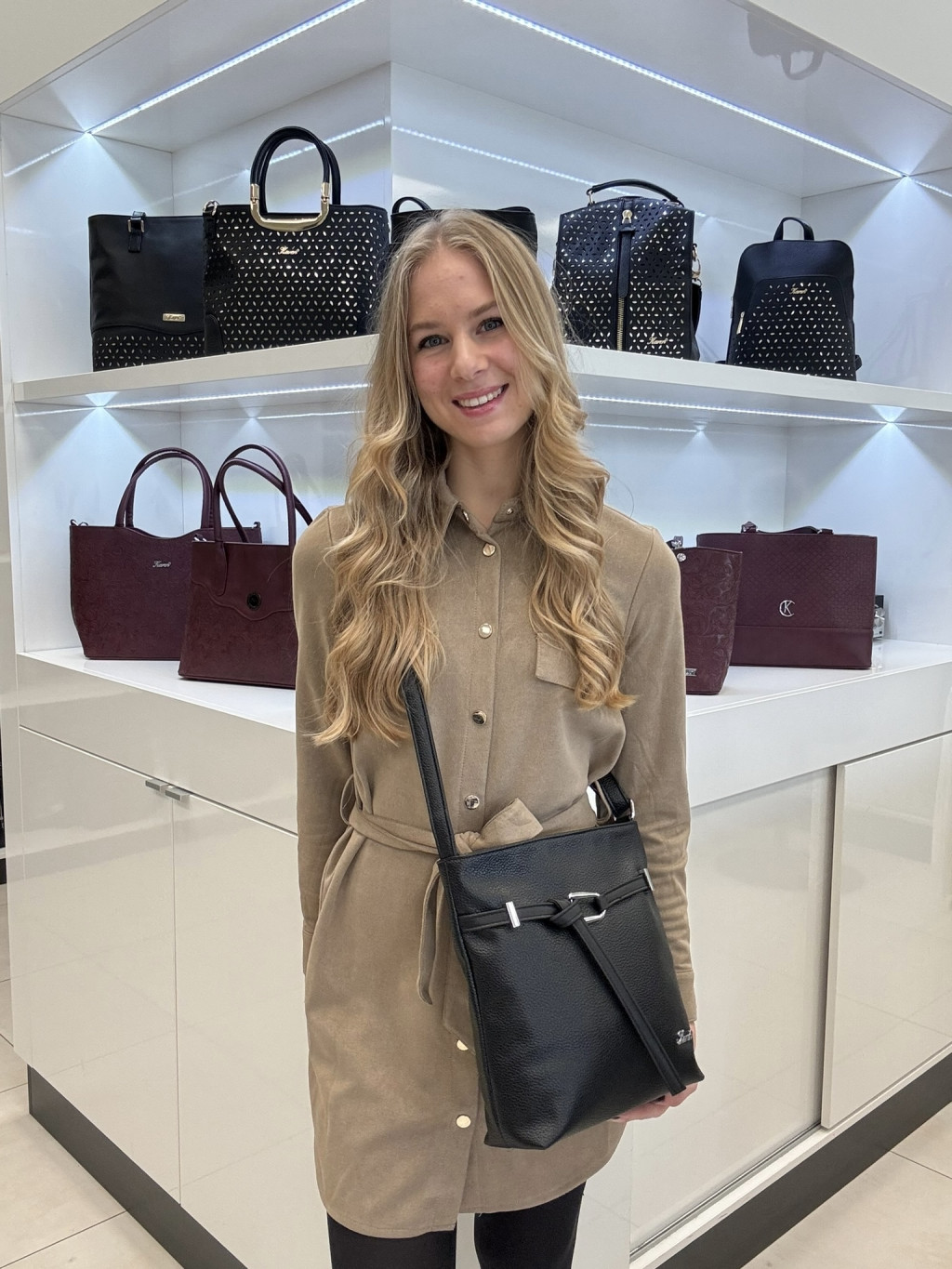 Karen rostbőr női oldaltáskahátulján cipzáras zsebcipzáras fő rekeszbelseje egyterűbelül mobiltartó és cipzáras zsebvállon és keresztben hordhatóalján fémvédő talpakvállpántja állítható 65-130 cmSzé26:x Ma:27x Mé: 10 cm