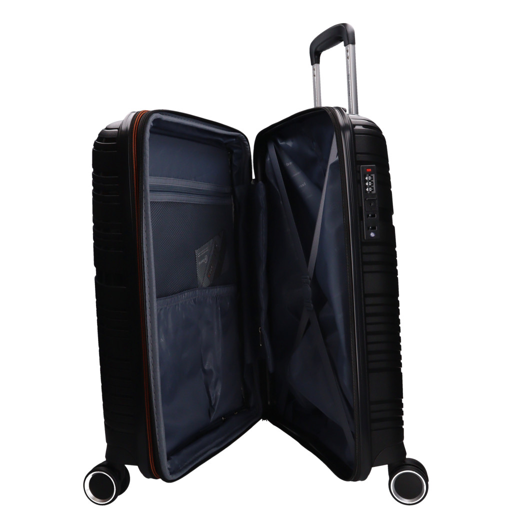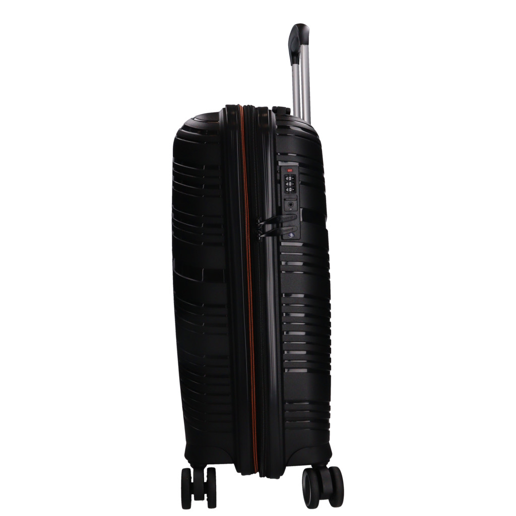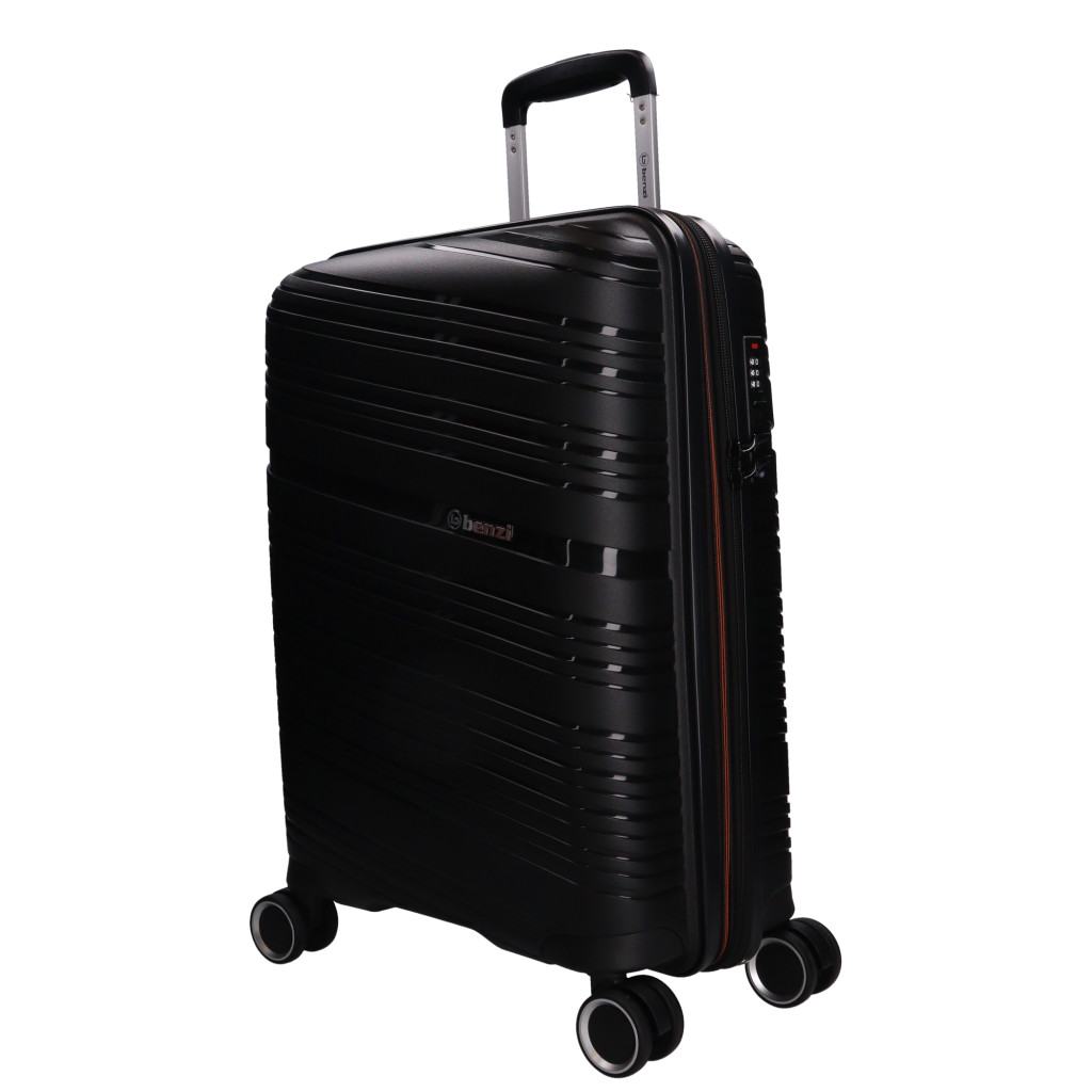 Benzi kabin méretű bőröndcipzárral bővíthetőpár napos utazáshoz360 fokban finoman gördülő dupla kerekes, négykerekűkemény, ütésálló Polipropilén anyagbólháromjegyű számzárasbelül cipzáras térelválasztóállítható belső keresztpántokkis kézi fogantyú és teleszkópos, kétállásos húzókartetején fix kézbefogó fogantyúSzé:38 x Ma:50 x Mé:20 cmSúlya: 2,5 kg