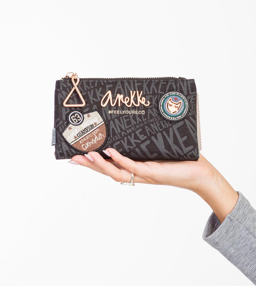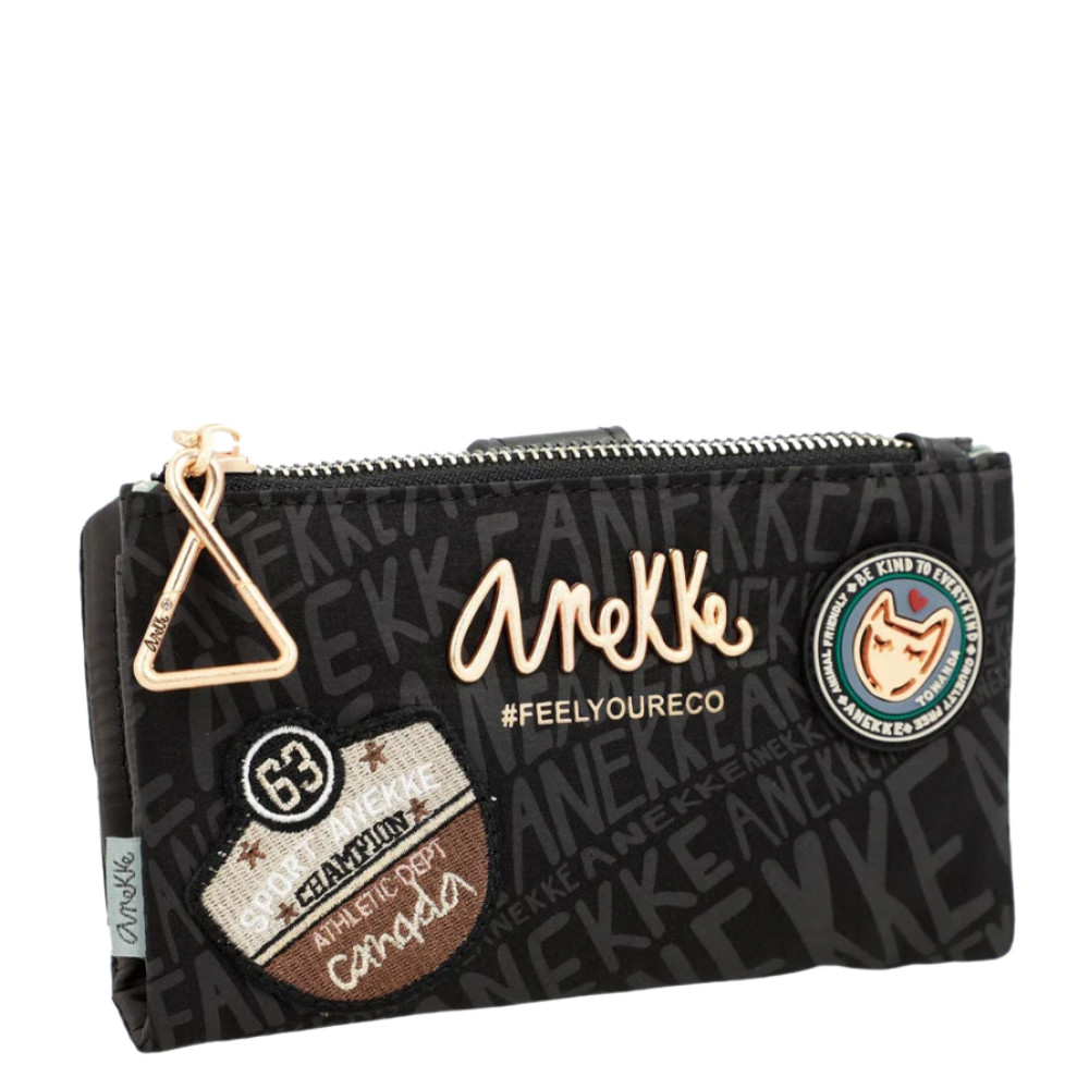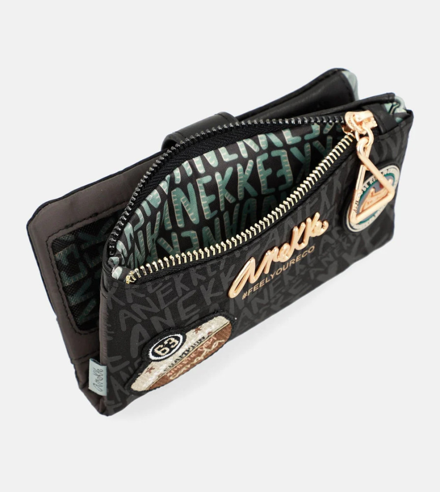 Anekke pénztárcaelején cipzáras aprótartóbelseje egyterűhátulján patentos fő rekeszbelül 9 db kártyatartóbelül 2 db fényképtartóbelül 1 db cipzáras zsebbelül 2 db rejtett rekeszbelül 1 db papírpénztartóRFID védelemmel ellátvaSzé:18x Ma:10x Mé:2 cm