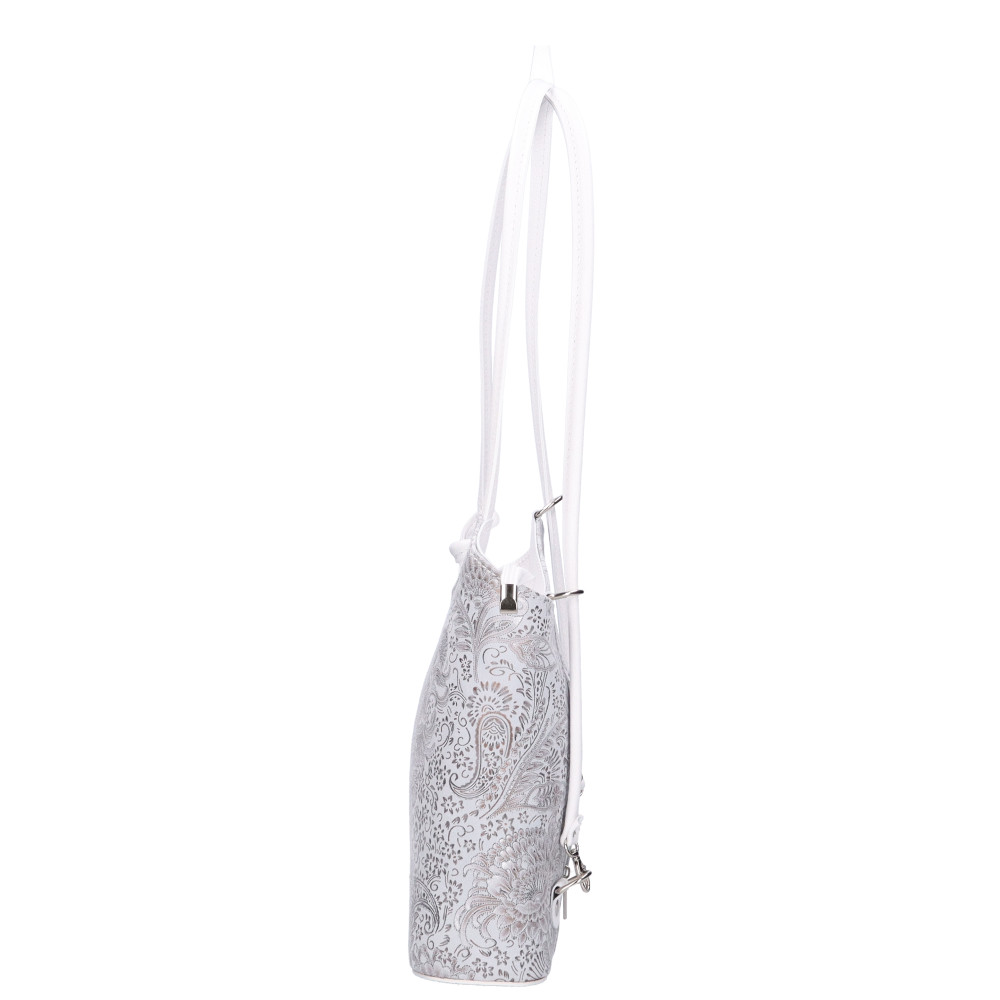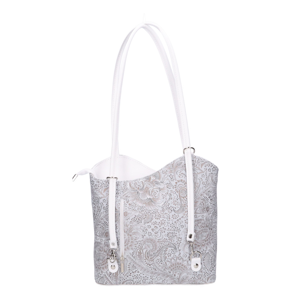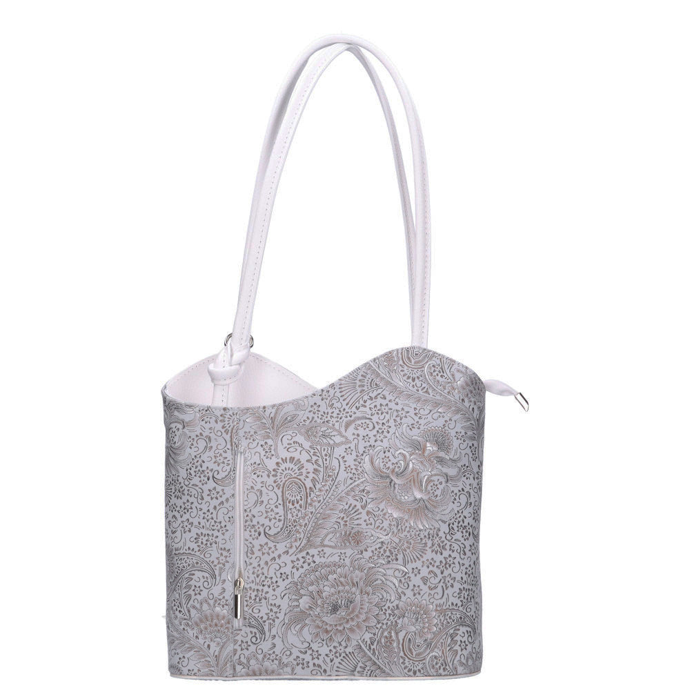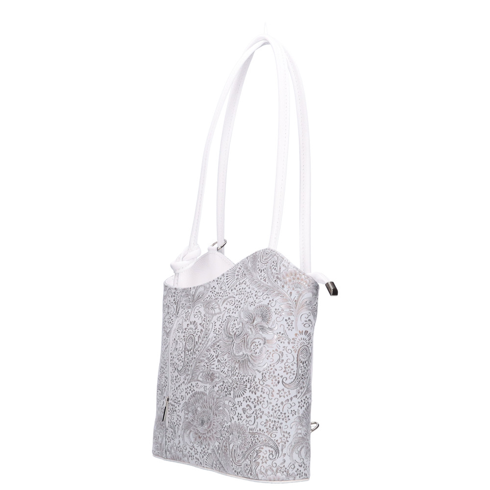 Olasz bőr 238 fehér-ezüst virág női válltáska/hátizsák
