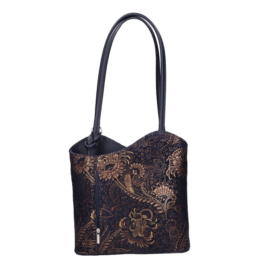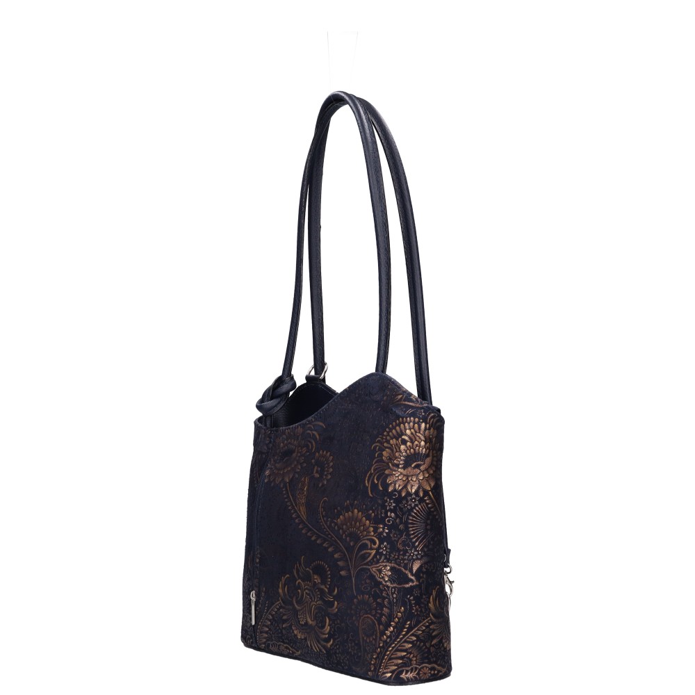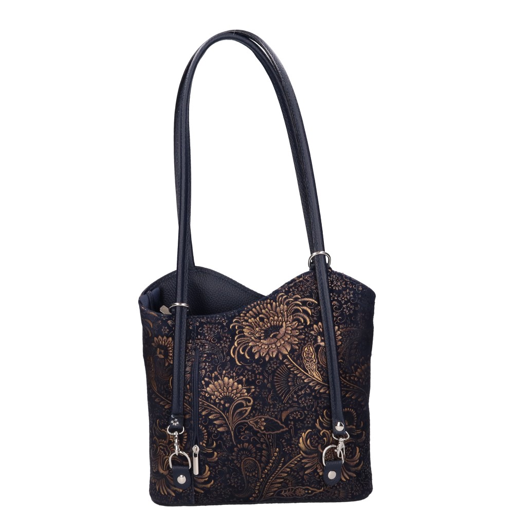 Olasz bőr 238 kék arany virágos válltáska/hátizsák