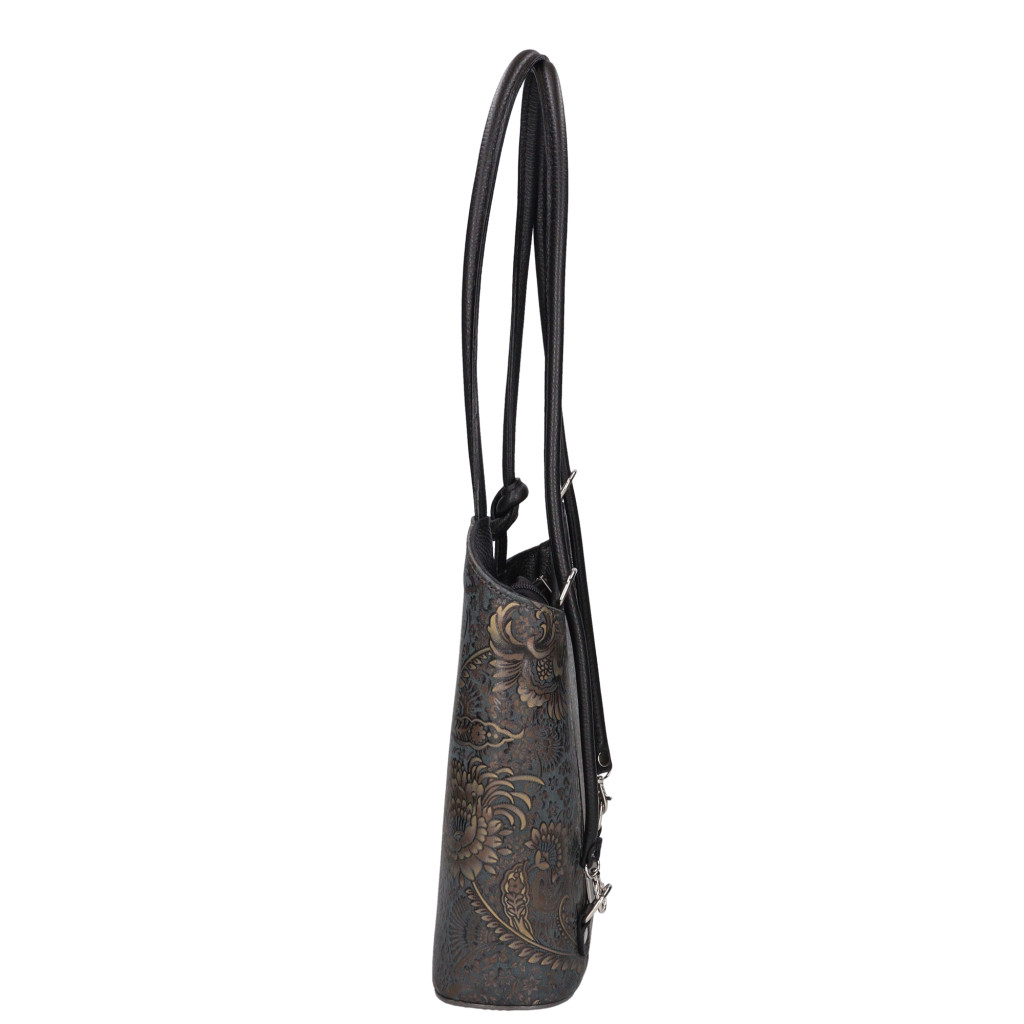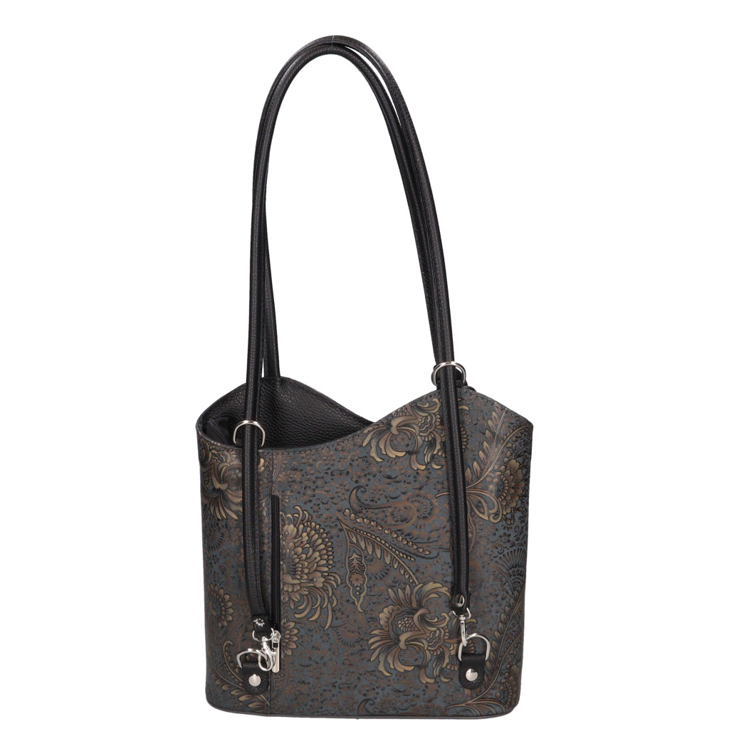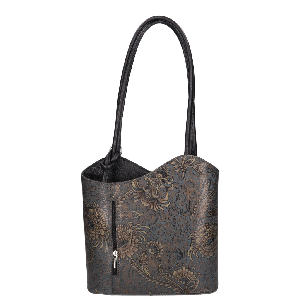 Olasz bőr 238 szürke arany virágos női hátizsák és válltáska