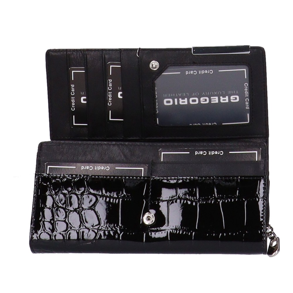 Gregorio BC-106 fekete lakk bőr női pénztárca