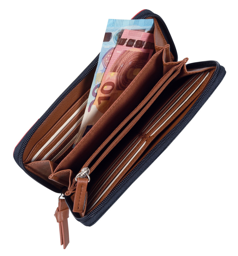 puha női pénztárcakörbe cipzáros fő rekesz3 rekeszes belülegy cipzáras aprótartó12 db kártya- és jegyzettertóval belülSzé:20 x Ma:10,5 x Mé:2,5 cm