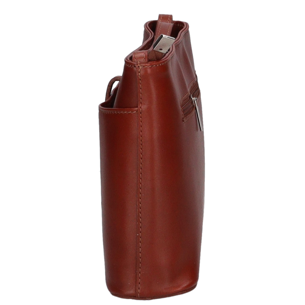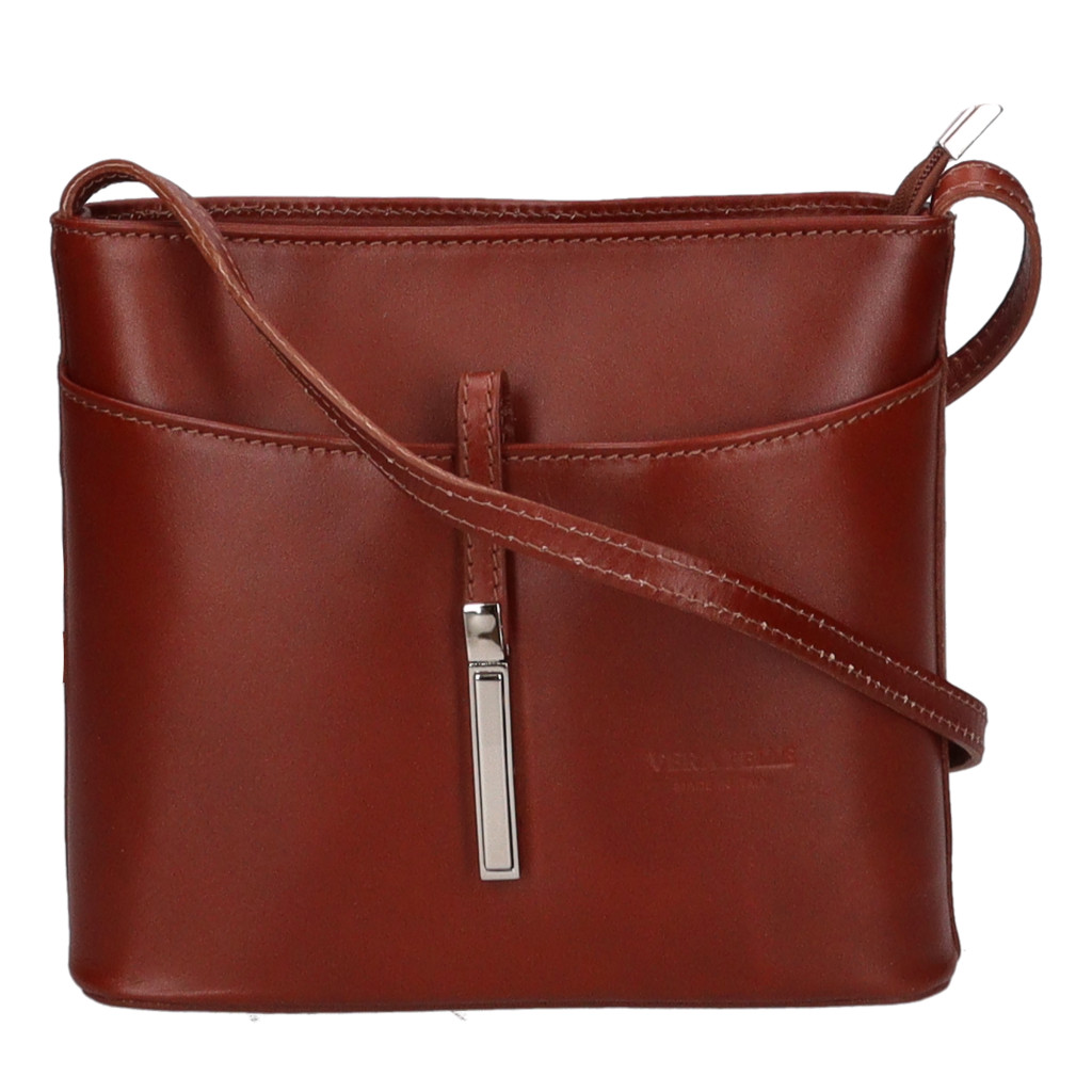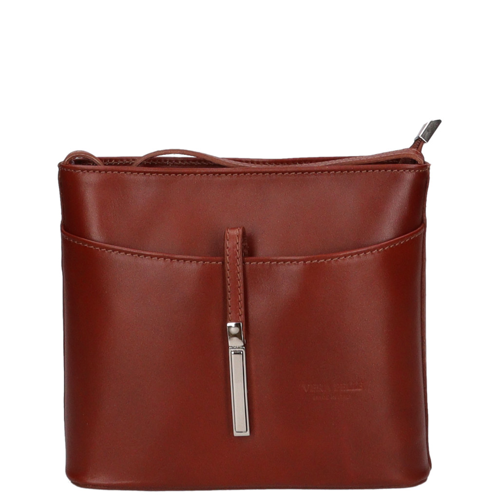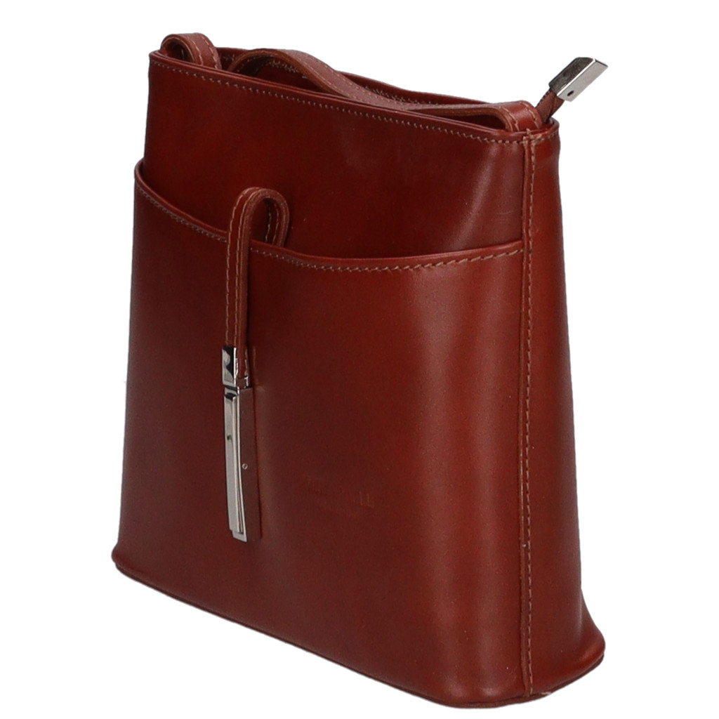 Olasz kicsi bőr táskaelején dísz csattal záródikhátulján cipzáras zsebbelseje egyterűbelső zseb és mobiltartókeresztben és vállon hordható vállpántja állítható 60-100 cmSzé:22x Ma:20x Mé:7 cm