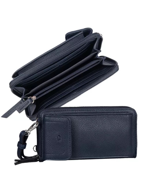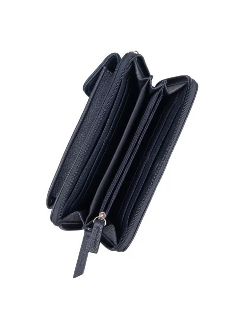 puha női pénztárcaelején patentos mobiltartókörbe cipzáras fő rekesz3 rekeszes belülegy cipzáras aprótartó2 rejtett zseb belül8 db kártyatartó belülkézben és keresztben hordhatóvállpántja állítható Szé:20 x Ma:10,5 x Mé:4 cm