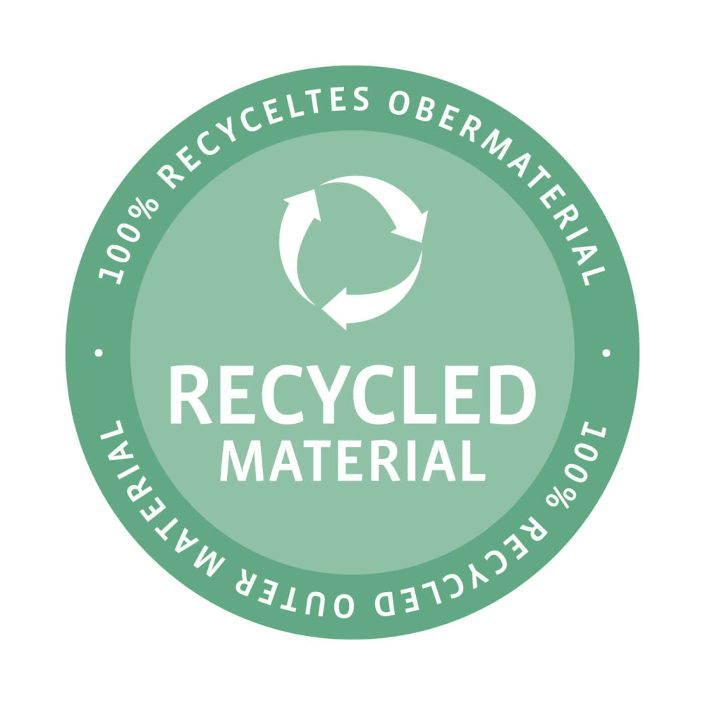 anyaga: víztaszító prémium poliészter, újrahasznosított PET palackból.