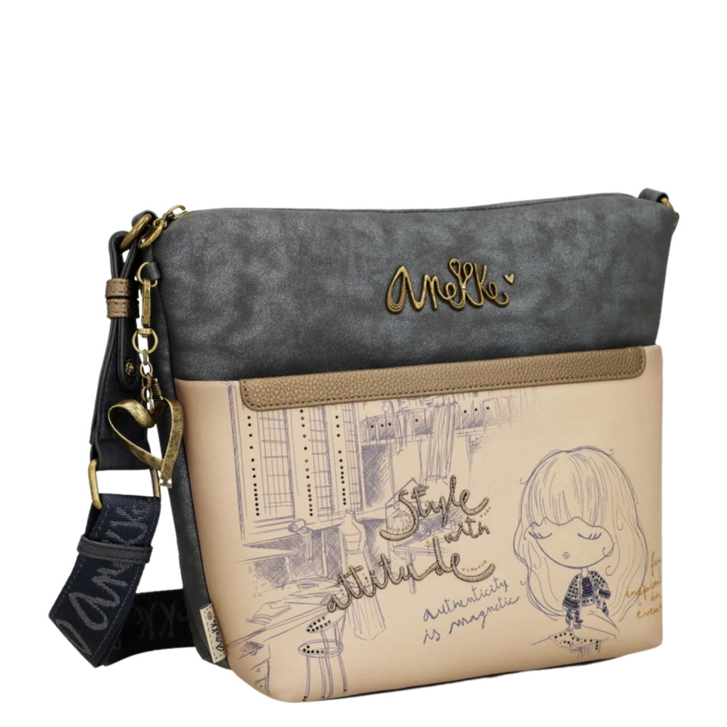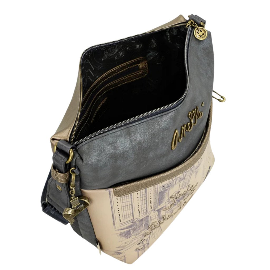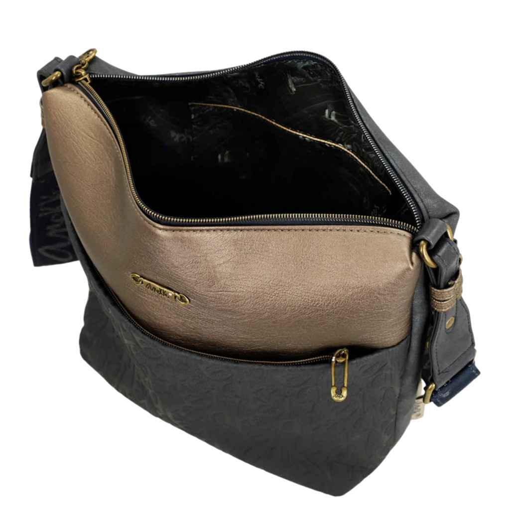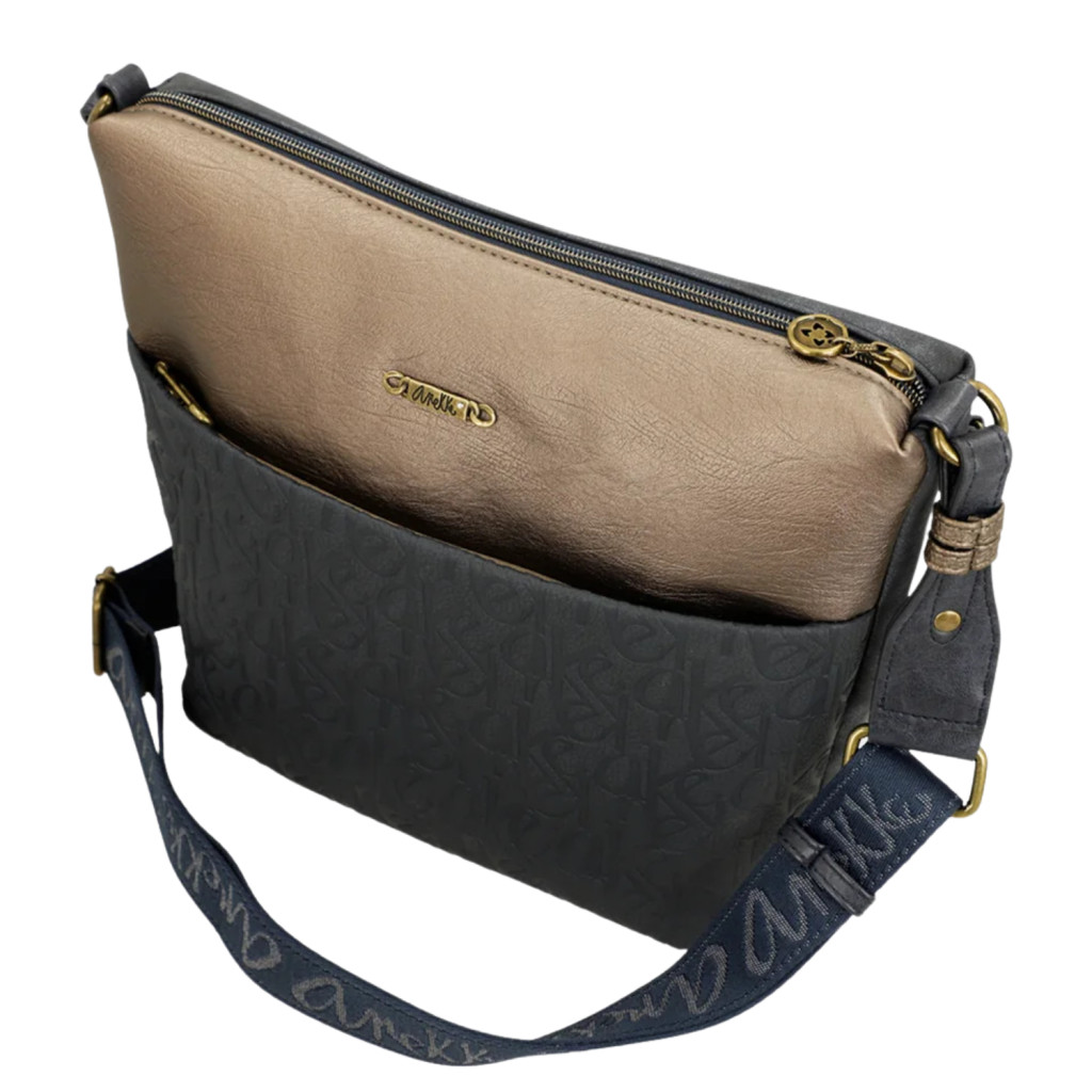 Anekke válltáskaelején és hátulján cipzáras zsebcipzáras fő rekeszbelseje egyterűbelül cipzáras zseb és mobiltartóvállon hordhatóvállpántja állíthatóSzé:33/26x Ma:26x Mé:13 cm