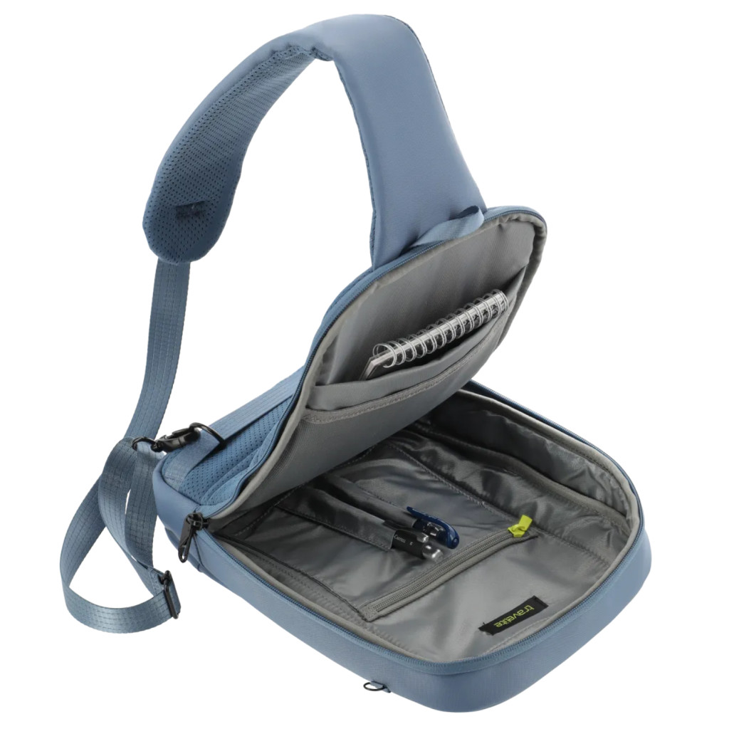 Travelite oldaltáskaközepes méretkiránduláshoz vagy a hétköznapokra2 cipzáras fő rekesztépőzáras cipzár az extra biztonság érdekébenelején cipzáras zsebbelseje egyterűmobiltok és belső cipzáras zseb9,7 hüvelykes tablettartó rekeszrejtett biztonsági zseb a hátoldalonpárnázott hátlapállítható, párnázott vállpántSzé:23 x Ma:32 x Mé:9 cmŰrtartalom: 6 l