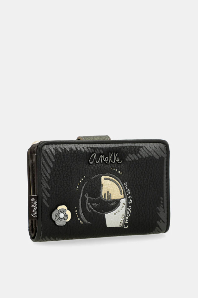 Anekke pénztárcafelül cipzáras aprópénztartó hátulján patentos kártyatartó rekeszRFID védelembelül 10 db kártyatartóbelül 2 db fényképtartóbelül 7 db rejtett rekeszbelül 2 db papírpénztartó rekeszSzé:14x Ma:10x Mé:3 cm