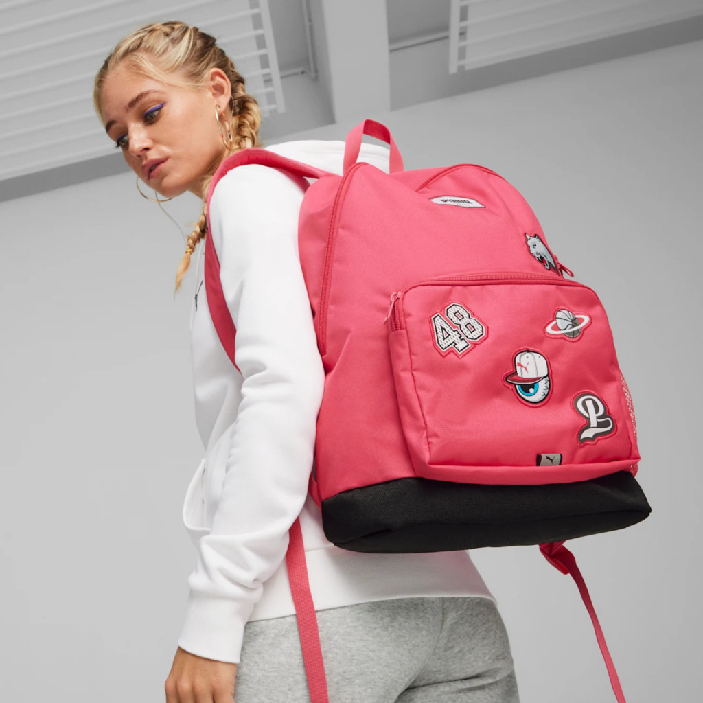A PUMA Patch termékcsalád minden olyan gyermek és tinédzser számára készült, akik szeretnék kifejezni lázadó oldalukat. Egyedi, kosárlabda témájú szőtt jelvények, kétirányú cipzár a fő rekeszben, laptop rekesz béléssel a fő rekeszben, elülső cipzáras zseb, 2 oldalsó hálós zseb, hevederes fogantyú, fényvisszaverő PUMA Cat márkajelzéssel bélelt vállpántok, szőtt PUMA logós jelvény, fényvisszaverő PUMA Cat részlet az alján.