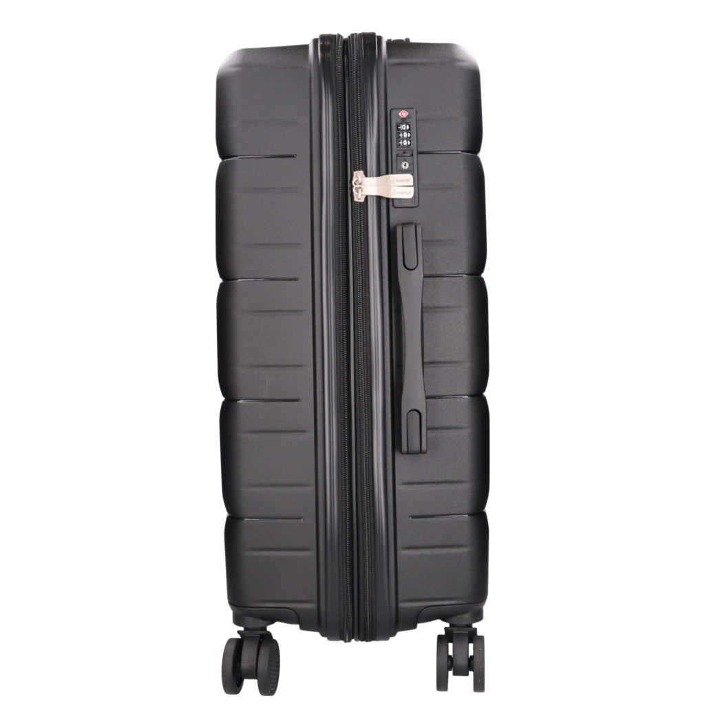 Benzi nagy méretű bőröndcipzárral bővíthetőtöbb hetes utazáshoz360 fokban finoman gördülő dupla kerekes, négykerekűkemény, ütésálló Polipropilén anyagbólháromjegyű számzárasbelül cipzáras térelválasztóállítható belső keresztpántokkis kézi fogantyú és teleszkópos, kétállásos húzókartetején és oldalán fix kézbefogó fogantyúSzé:46 x Ma:75 x Mé:30 cmSúlya: 4 kg