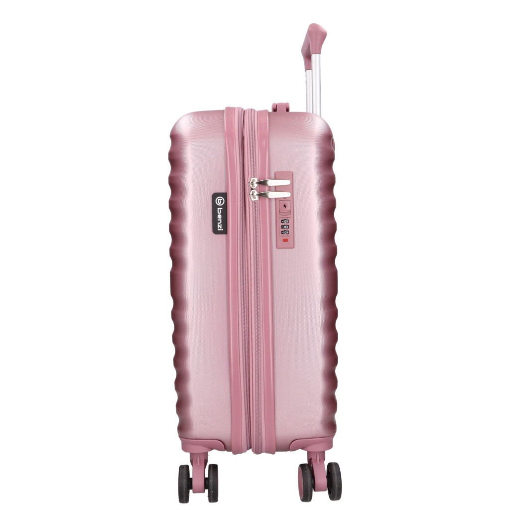 Benzi kabin méretű bőröndcipzárral bővíthetőpár napos utazáshoz360 fokban finoman gördülő dupla kerekes, négykerekűkemény, ütésálló Polipropilén anyagbólháromjegyű számzárasbelül cipzáras térelválasztóállítható belső keresztpántokkis kézi fogantyú és teleszkópos, kétállásos húzókartetején fix kézbefogó fogantyúSzé:35 x Ma:55 x Mé:20 cmSúlya: 2,6 kg