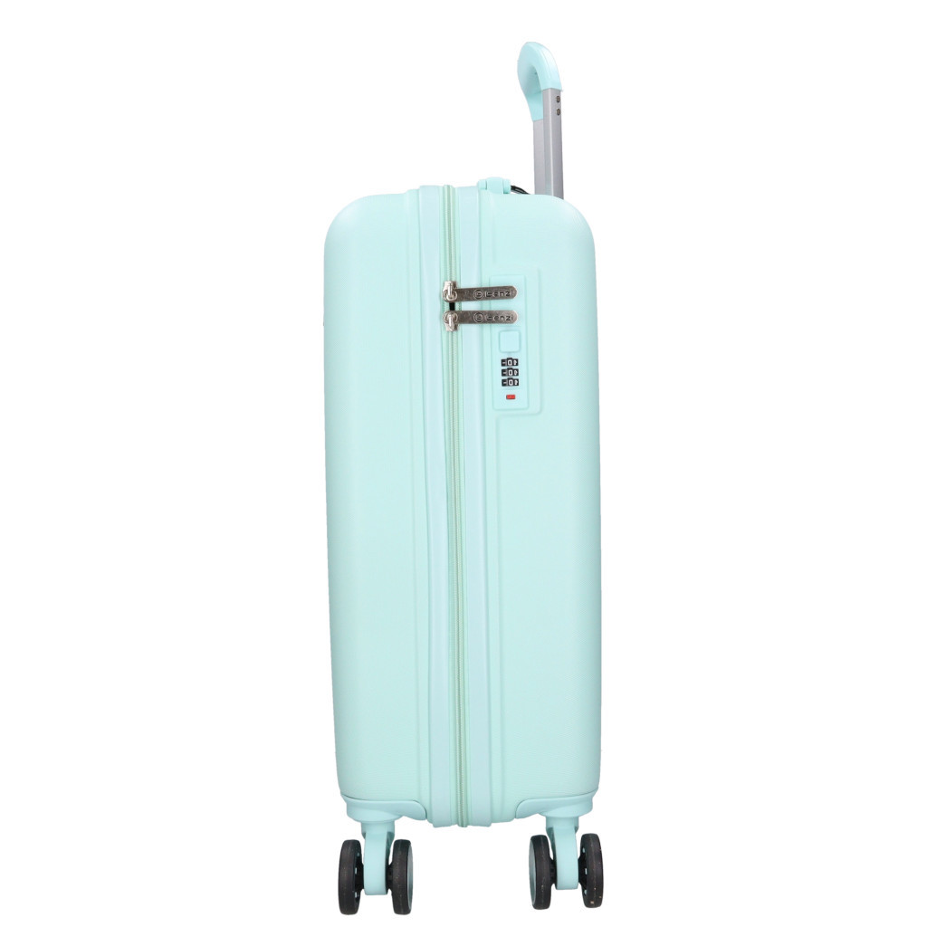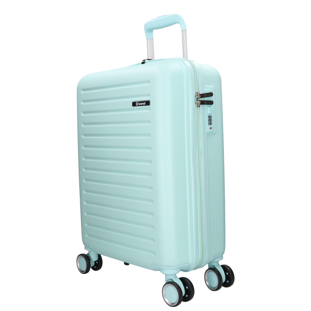 Benzi kabin méretű bőröndpár napos utazáshoz360 fokban finoman gördülő dupla kerekes, négykerekűkemény, ütésálló Polipropilén anyagbólháromjegyű számzárasbelül cipzáras térelválasztóállítható belső keresztpántokkis kézi fogantyú és teleszkópos, kétállásos húzókartetején fix kézbefogó fogantyúSzé:38 x Ma:55 x Mé:20 cmSúlya: 2,6 kg