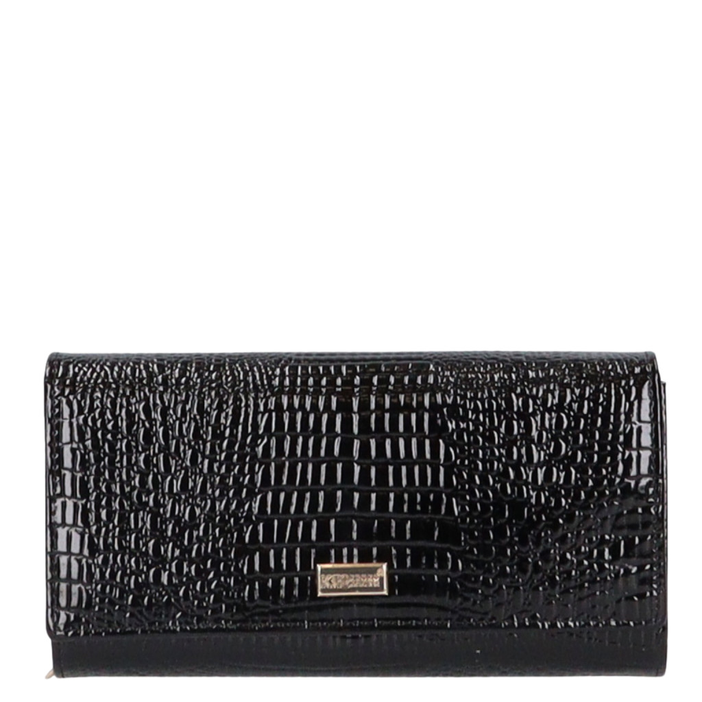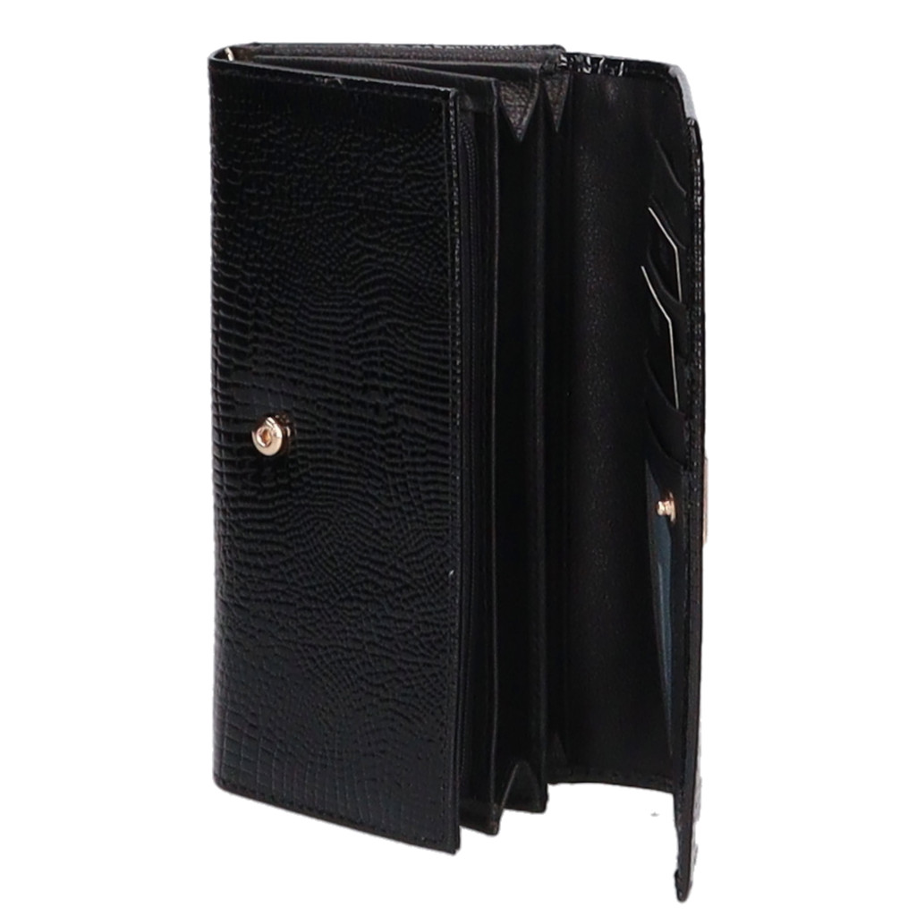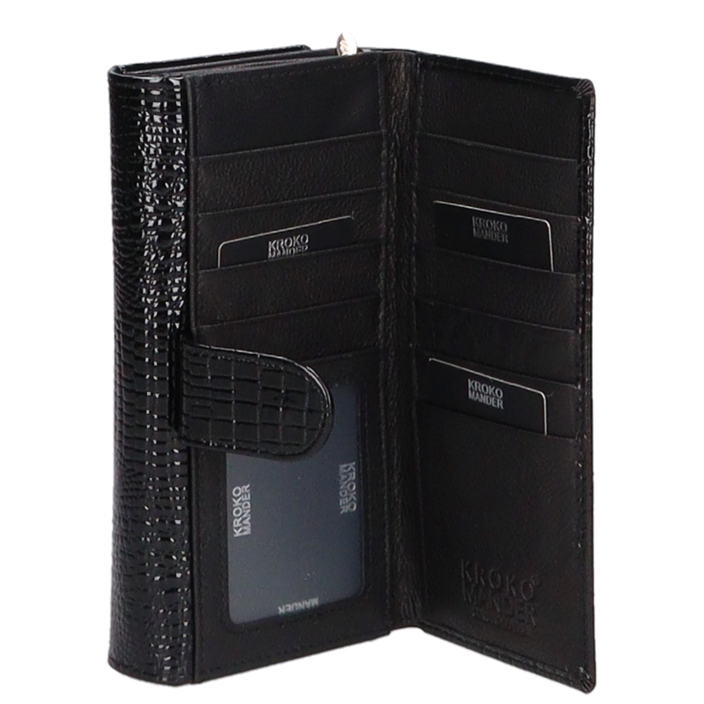 lakk bőr női pénztárcakörbe cipzáras fő rekesz1 db cipzáras aprótartó belül3 db papírpénztartó belül8 db kártyatartó belül2 db rejtett rekesz belülSzé:19x Ma:9x Mé:2 cm